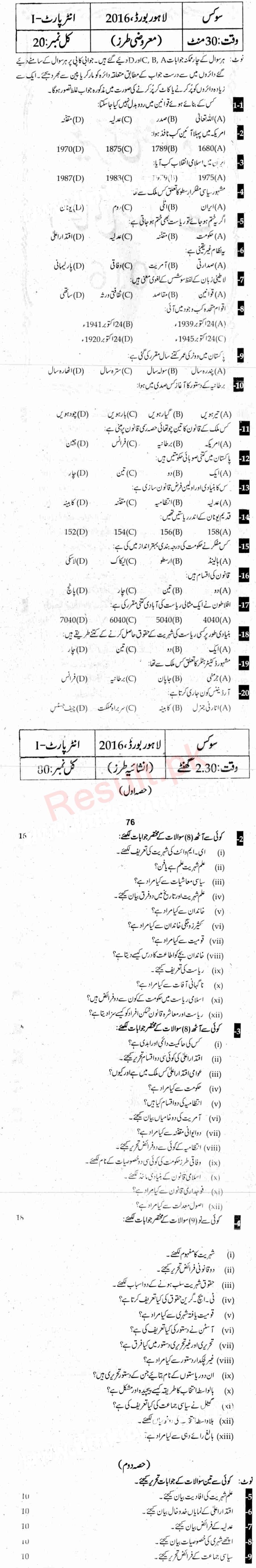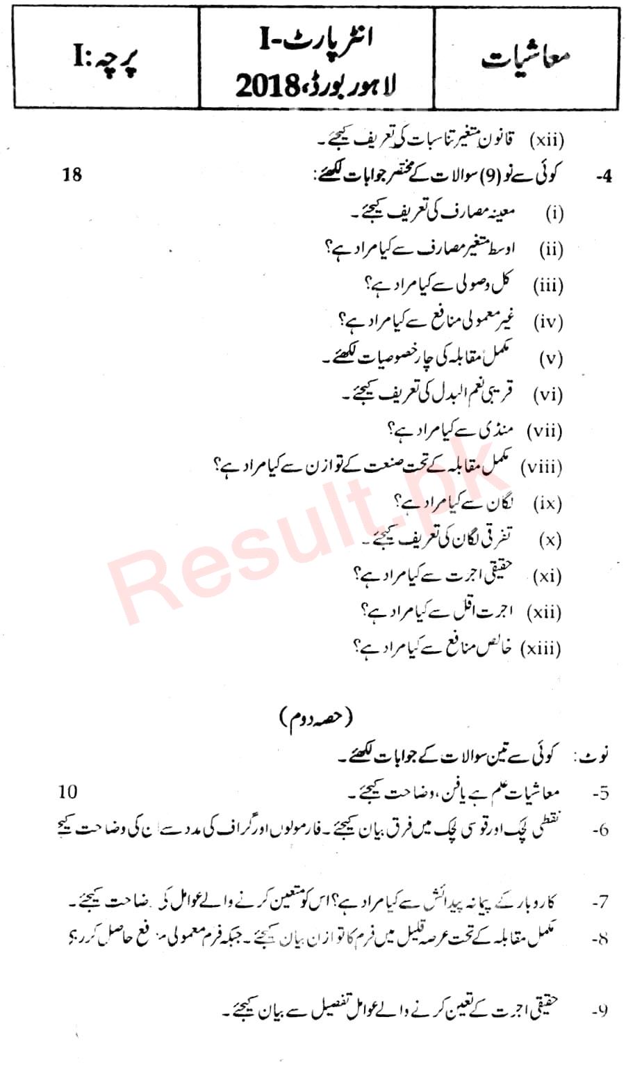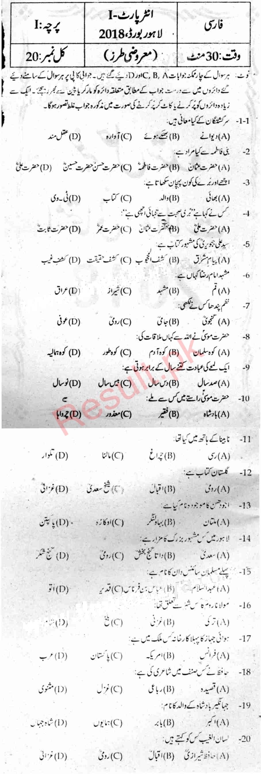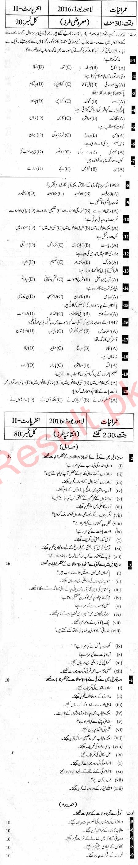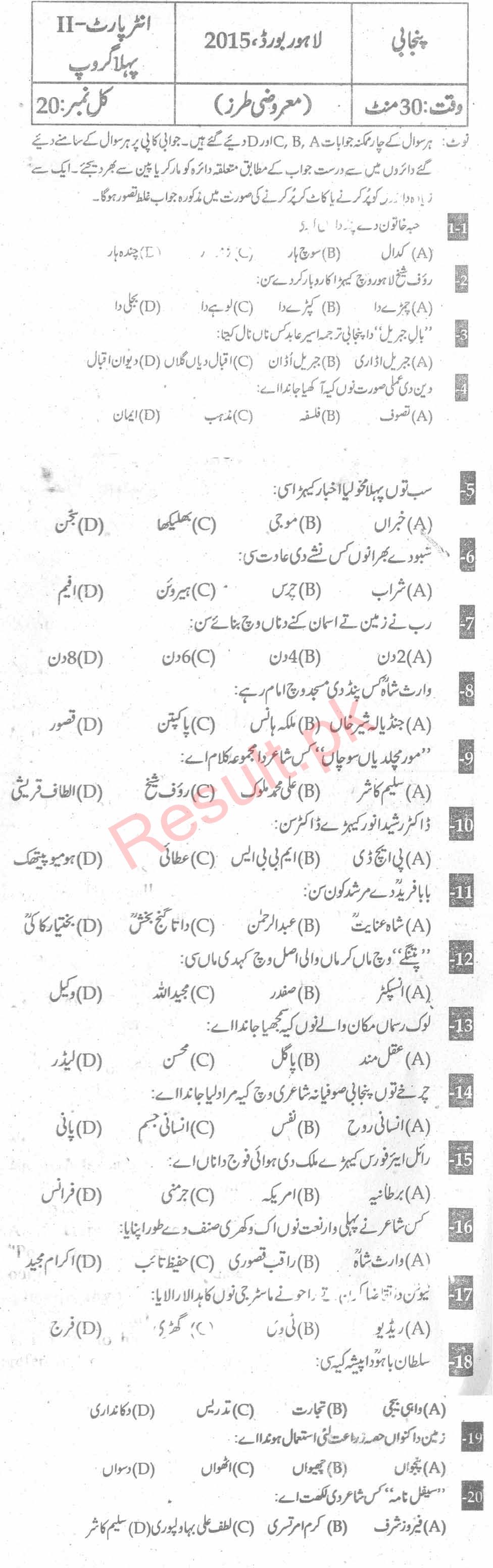 BISE Lahore Board Inter Part 1 2, 11th & 12th, Intermediate, FA, 1st & 2nd year Class, FSC, HSSC Past Papers 2026