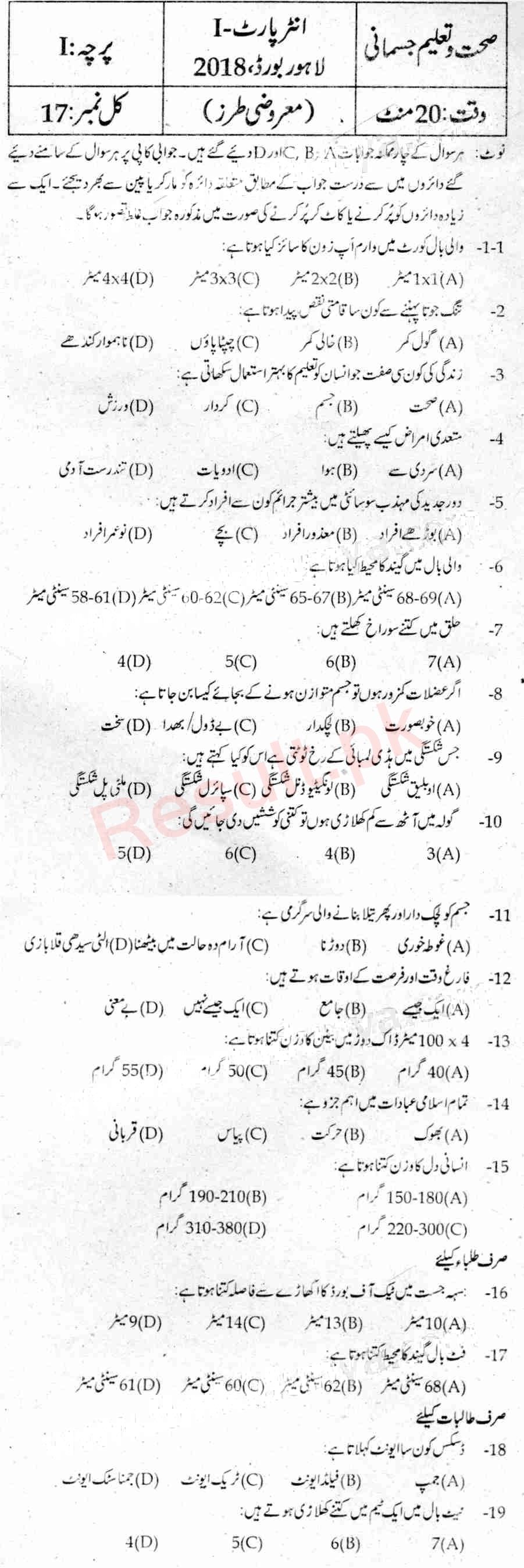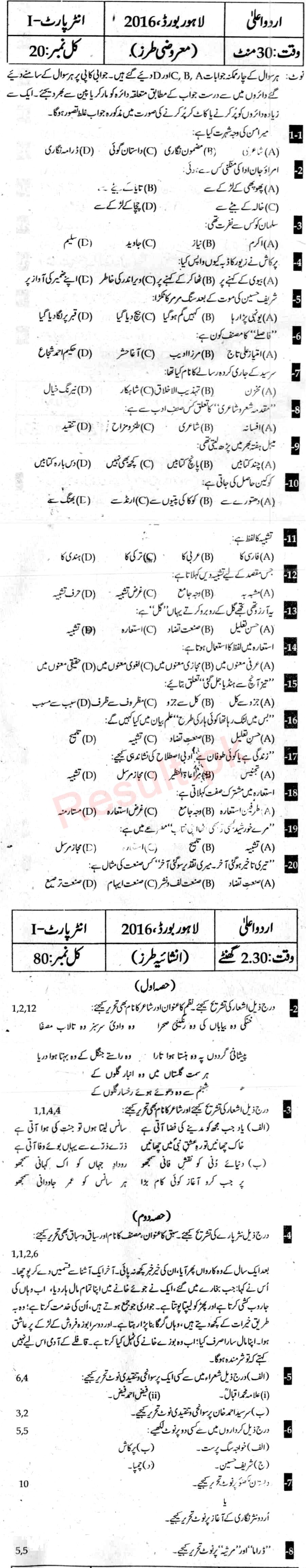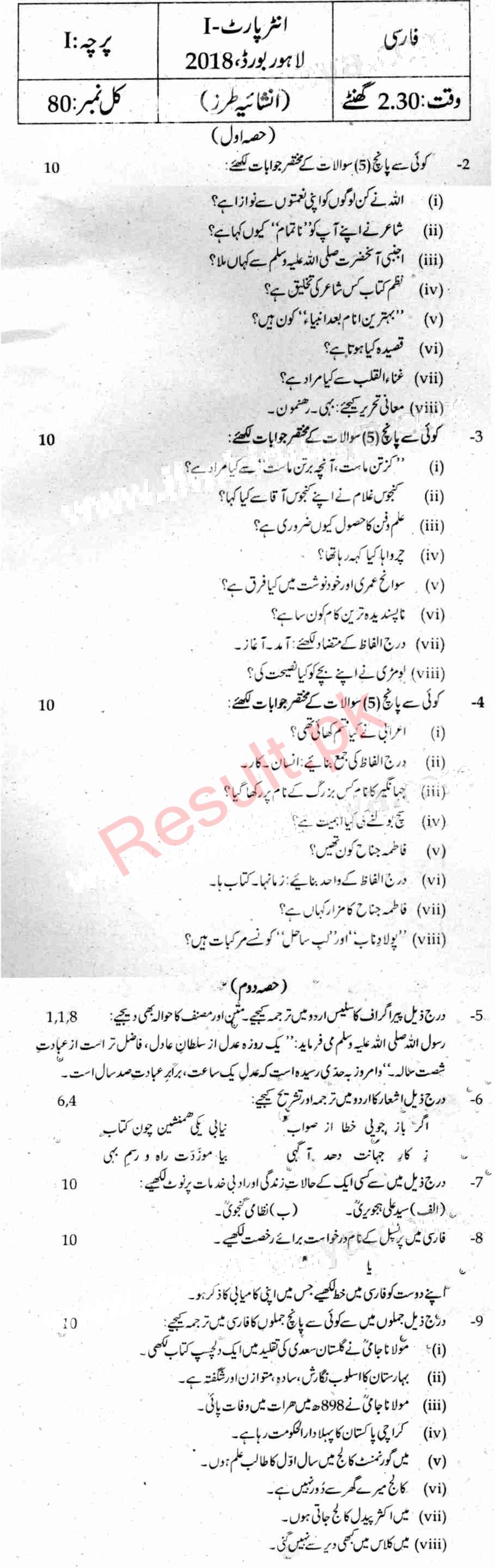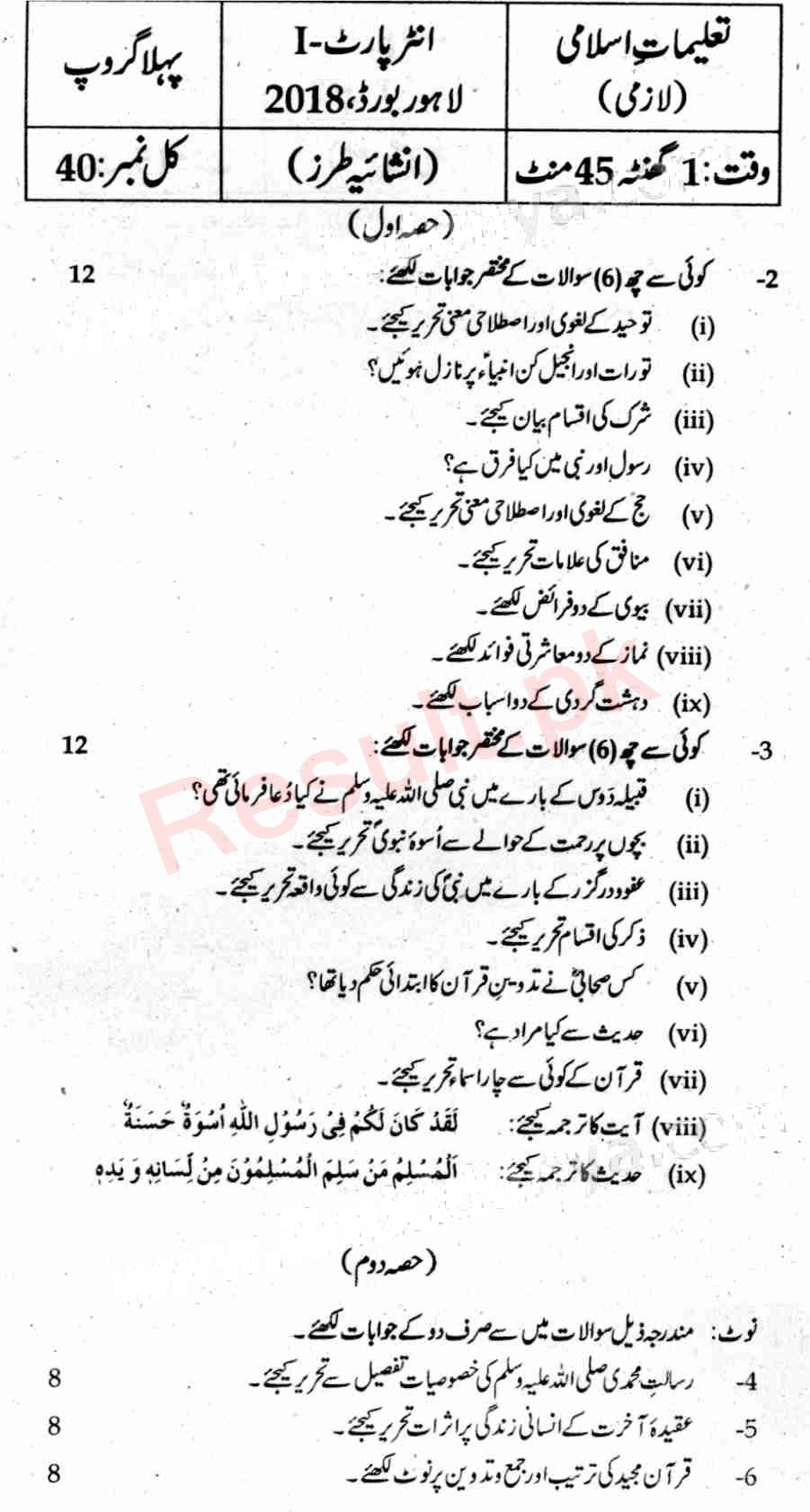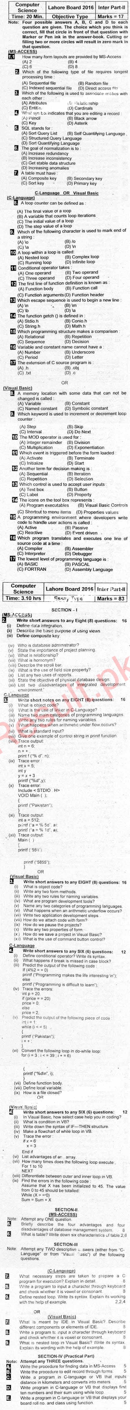 BISE Lahore Board Inter Part 1 2, 11th & 12th, Intermediate, FA, 1st & 2nd year Class, FSC, HSSC Past Papers 2026