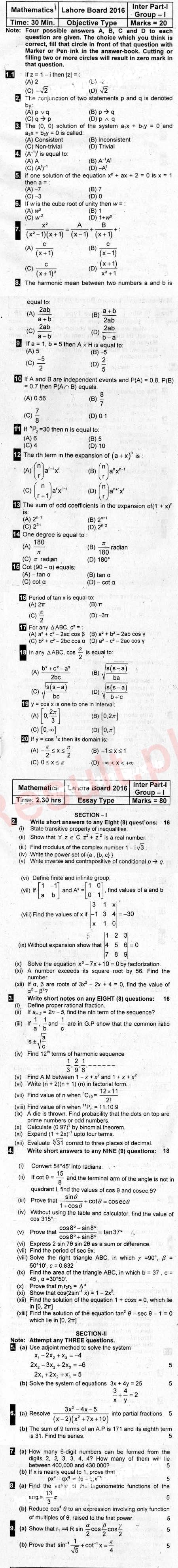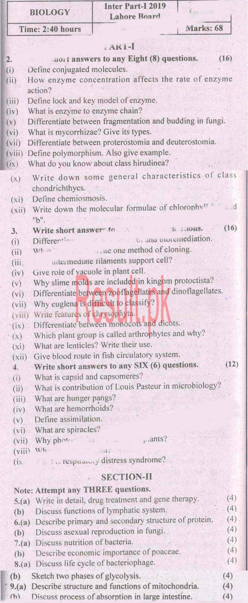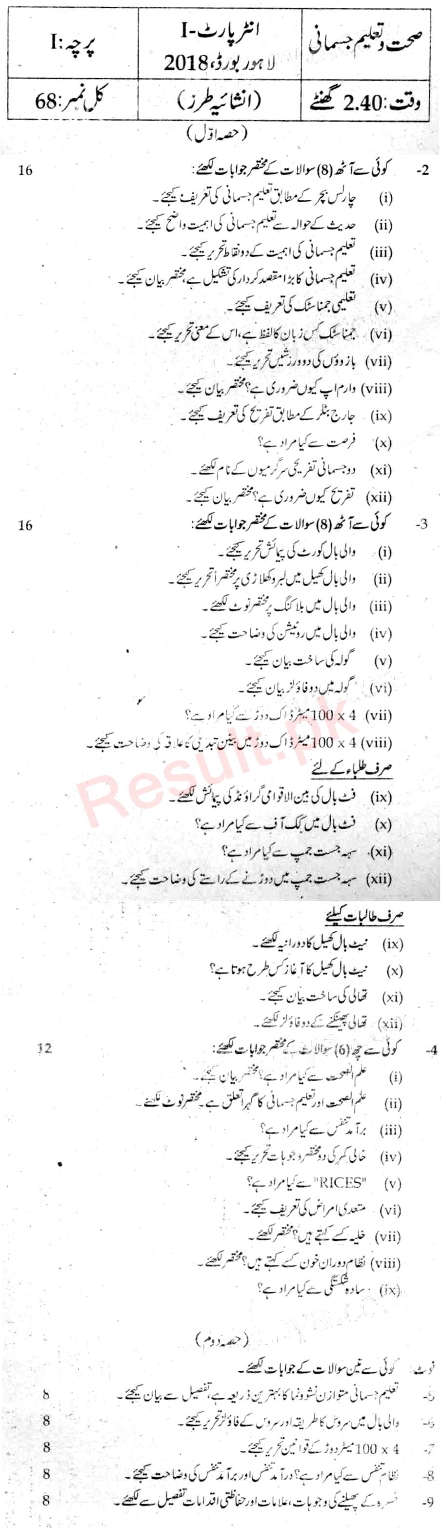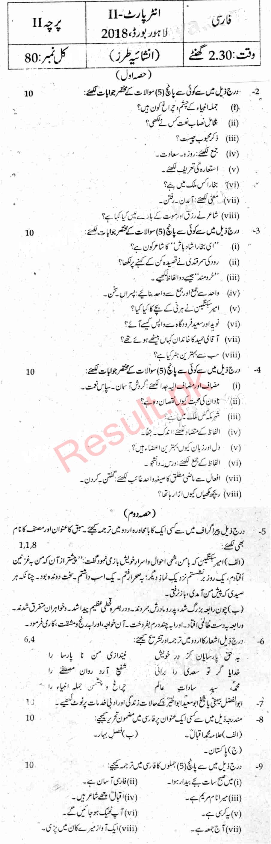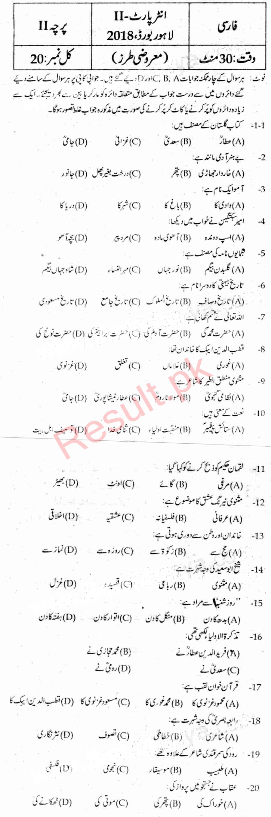 BISE Lahore Board Inter Part 1 2, 11th & 12th, Intermediate, FA, 1st & 2nd year Class, FSC, HSSC Past Papers 2026