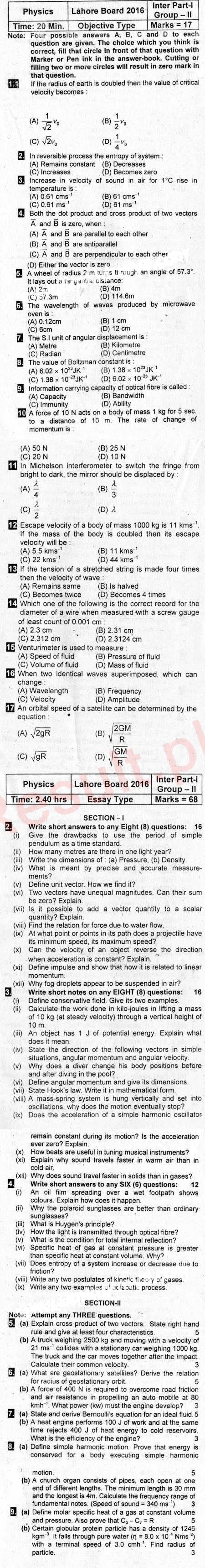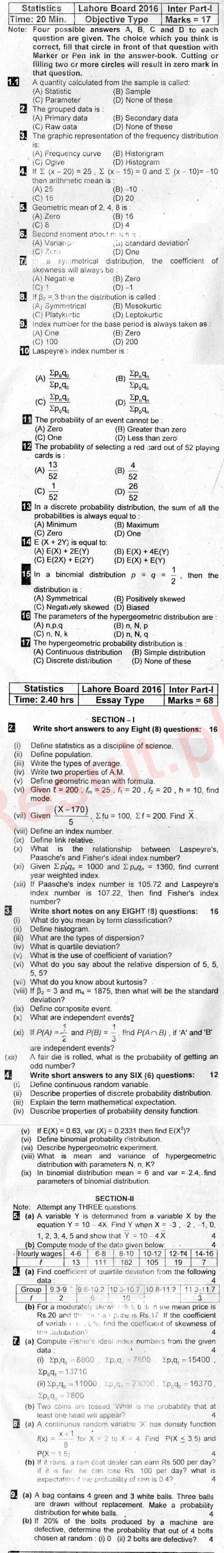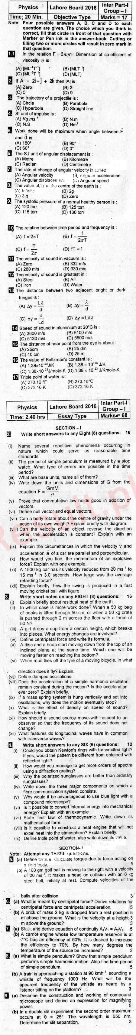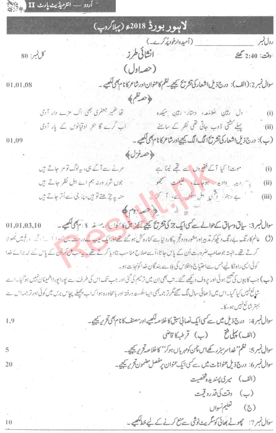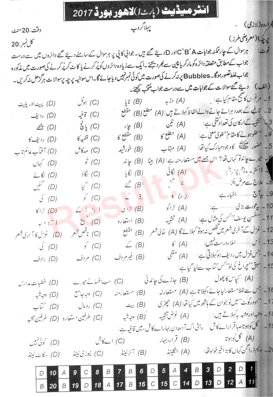 BISE Lahore Board Inter Part 1 2, 11th & 12th, Intermediate, FA, 1st & 2nd year Class, FSC, HSSC Past Papers 2026