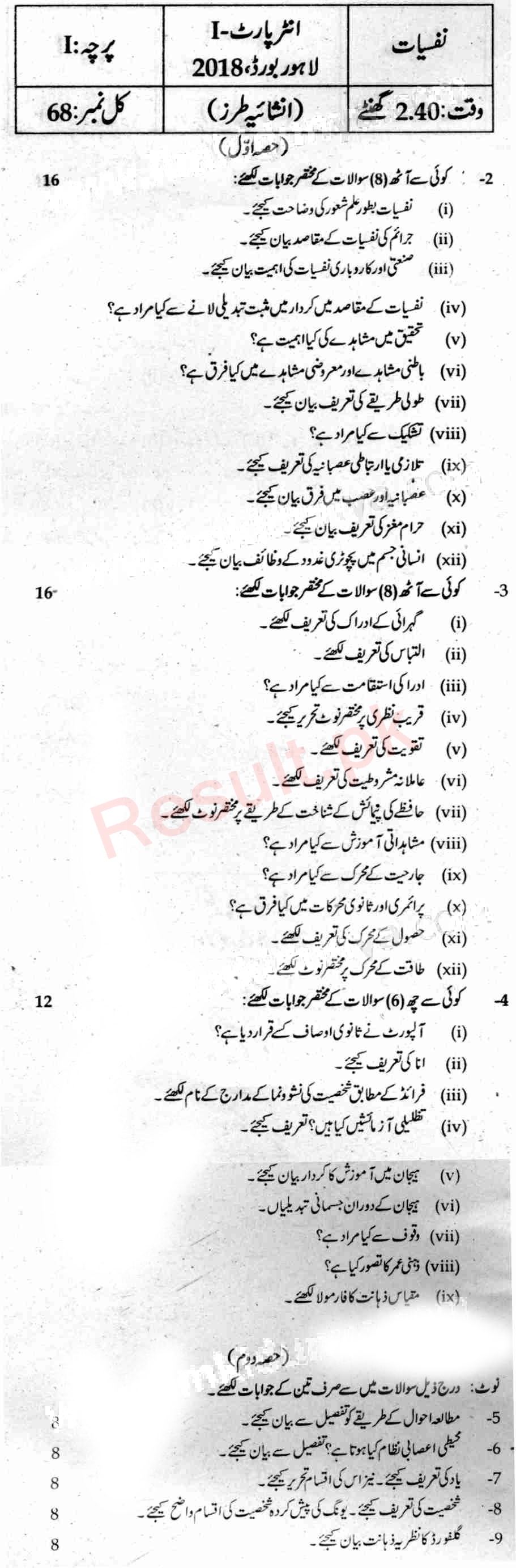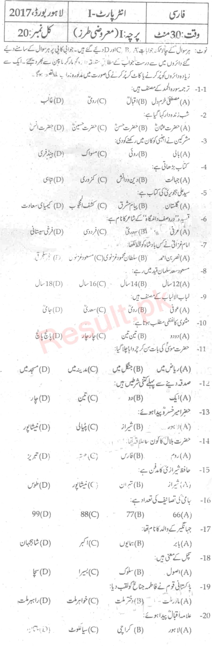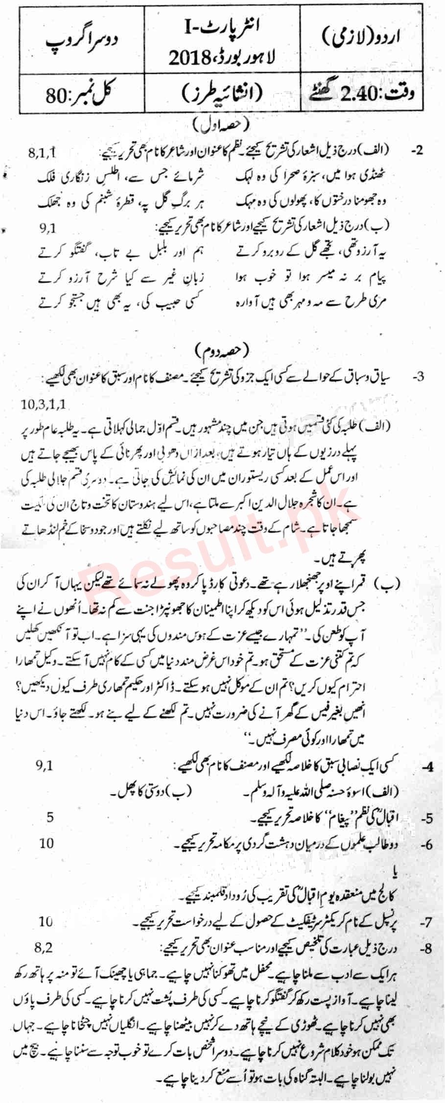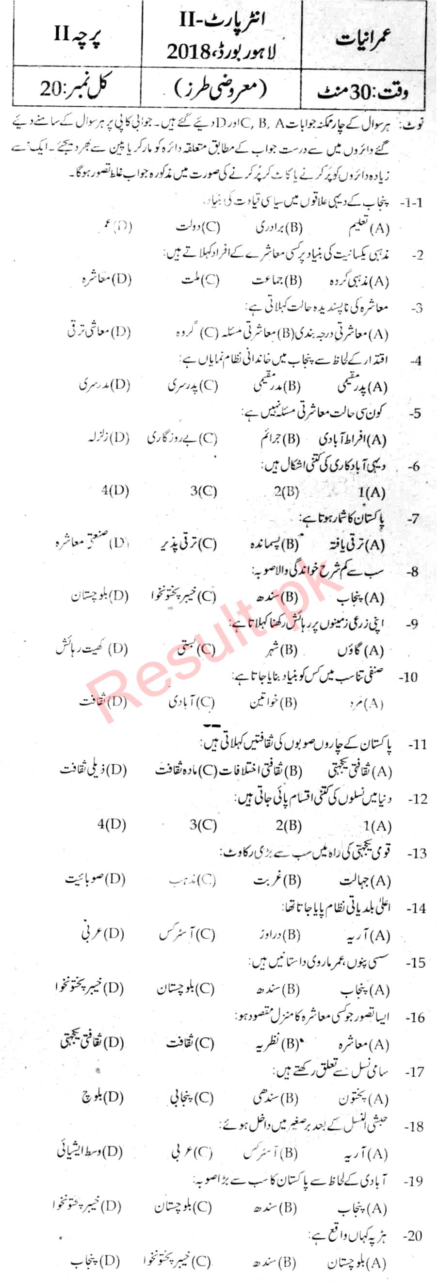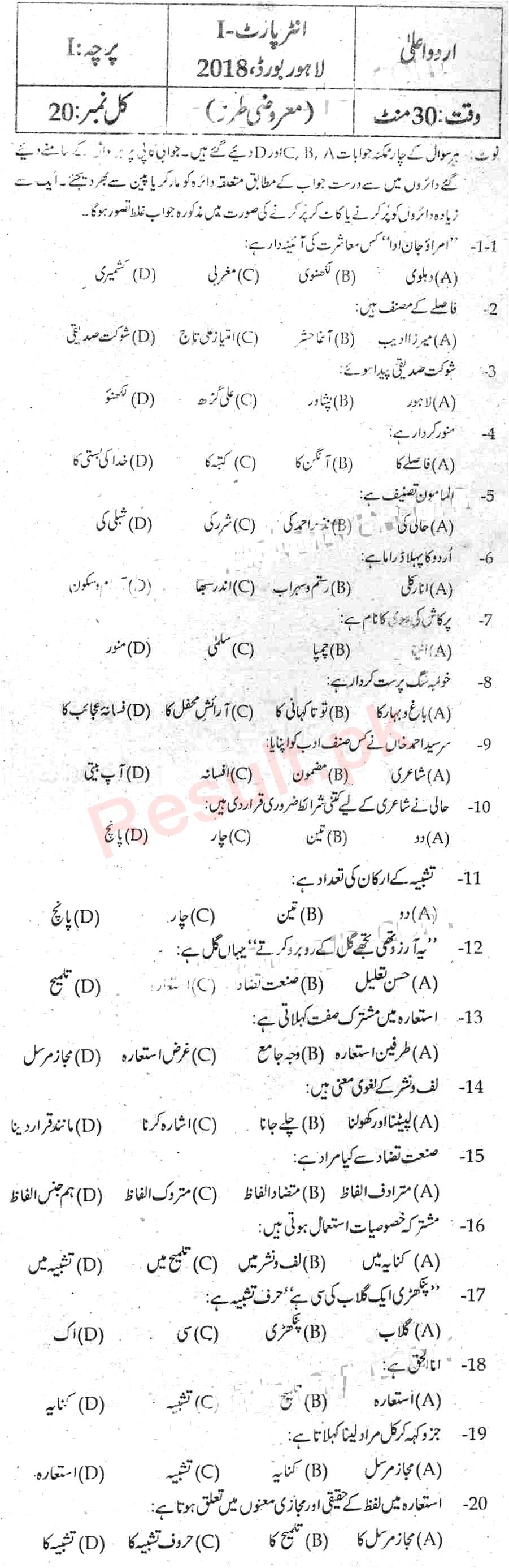 BISE Lahore Board Inter Part 1 2, 11th & 12th, Intermediate, FA, 1st & 2nd year Class, FSC, HSSC Past Papers 2026
