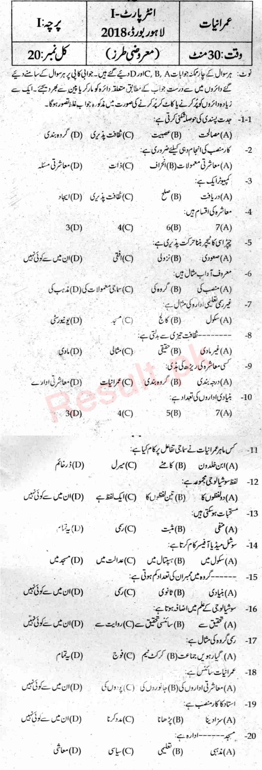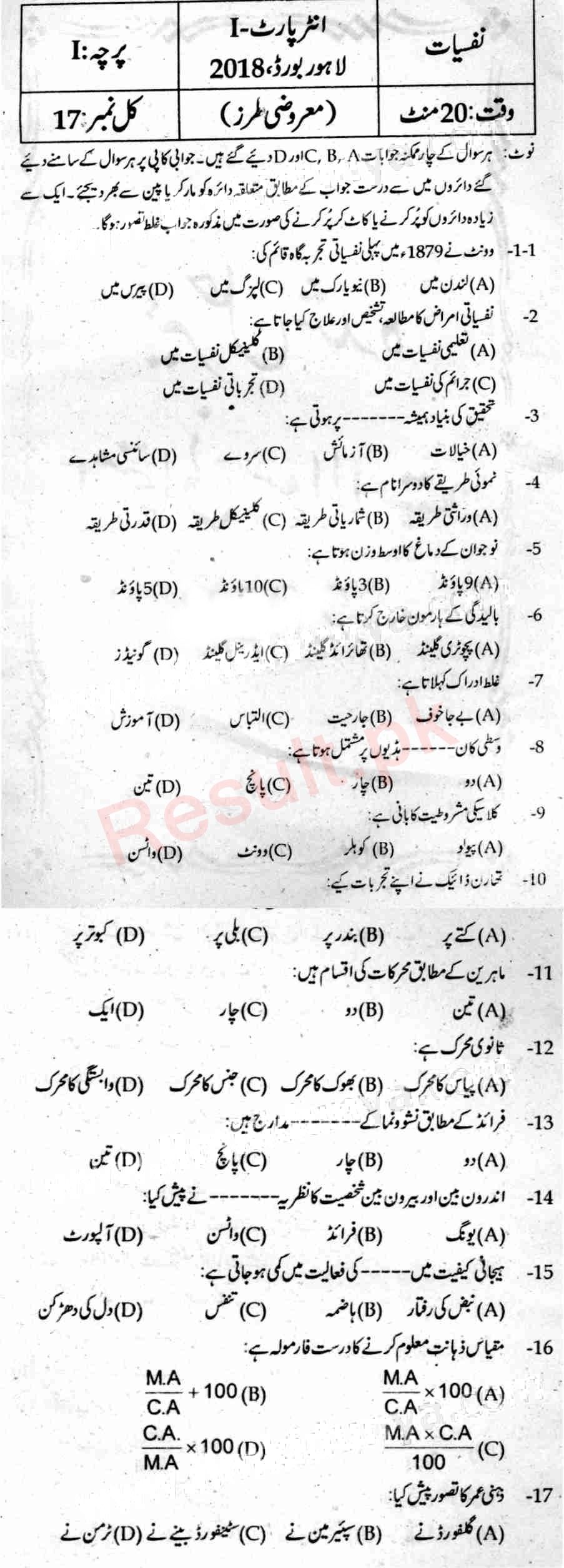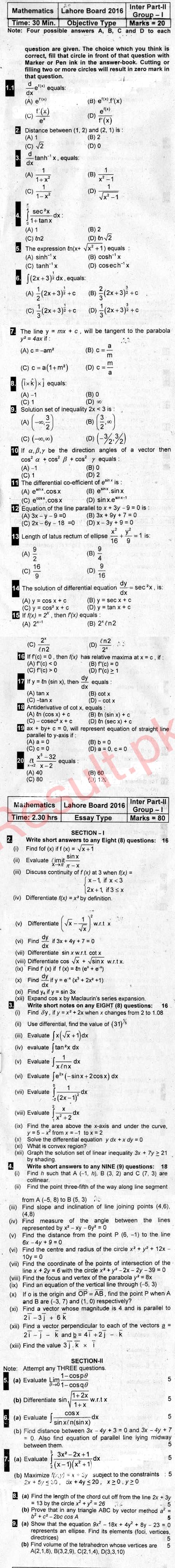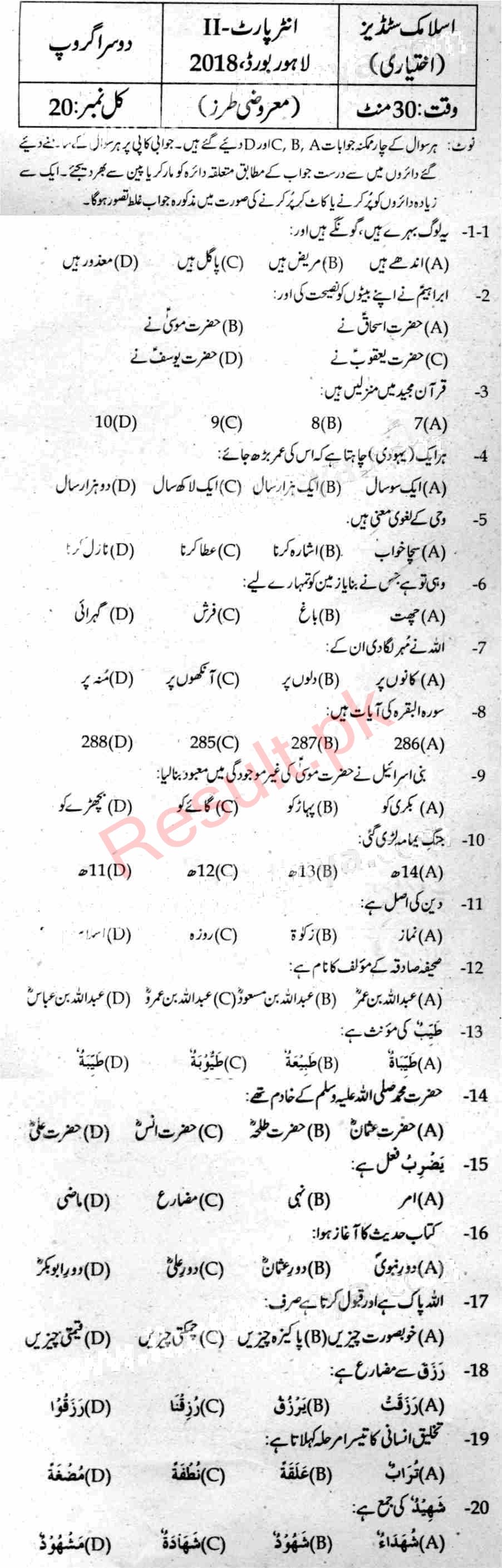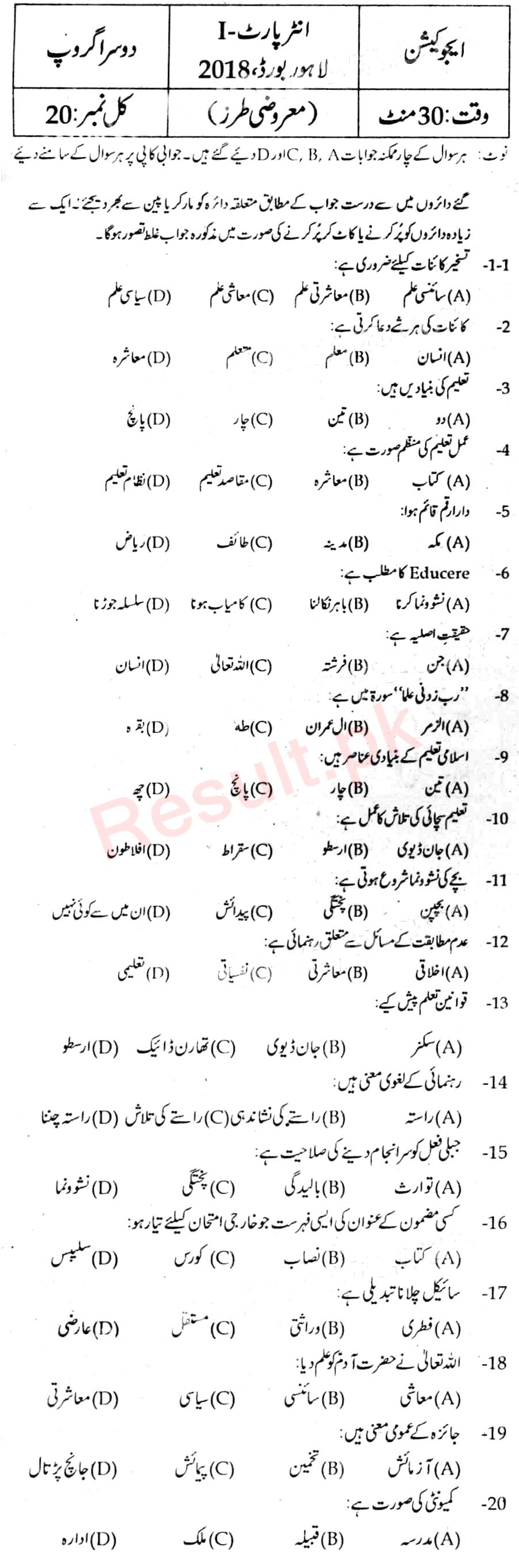 BISE Lahore Board Inter Part 1 2, 11th & 12th, Intermediate, FA, 1st & 2nd year Class, FSC, HSSC Past Papers 2026