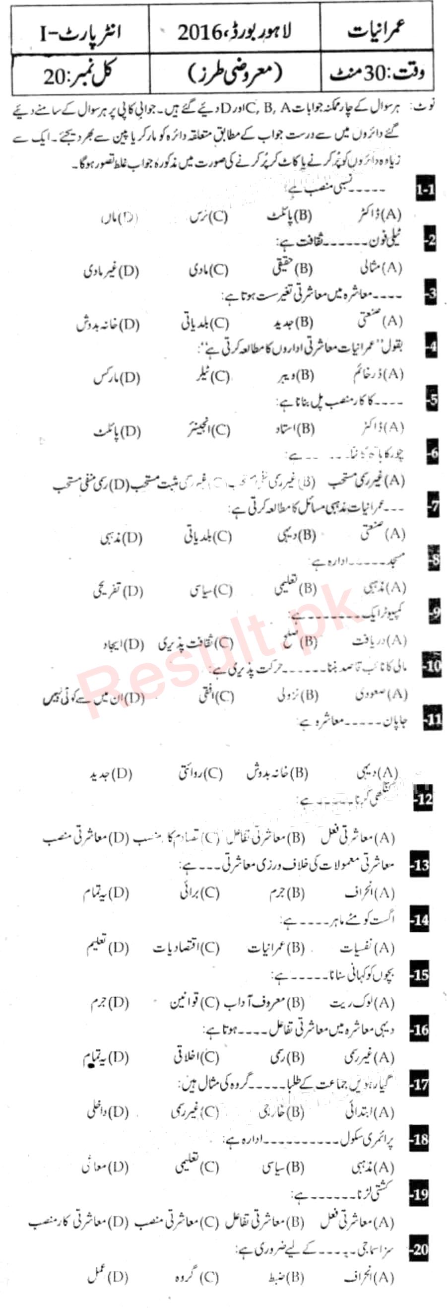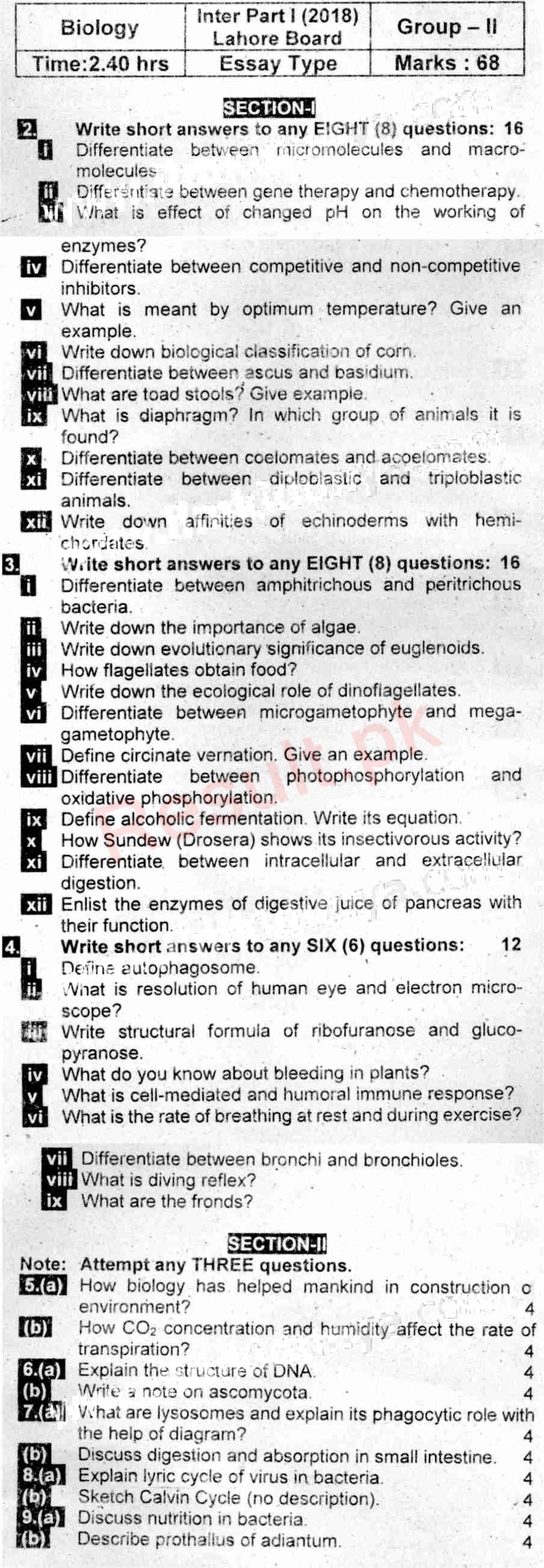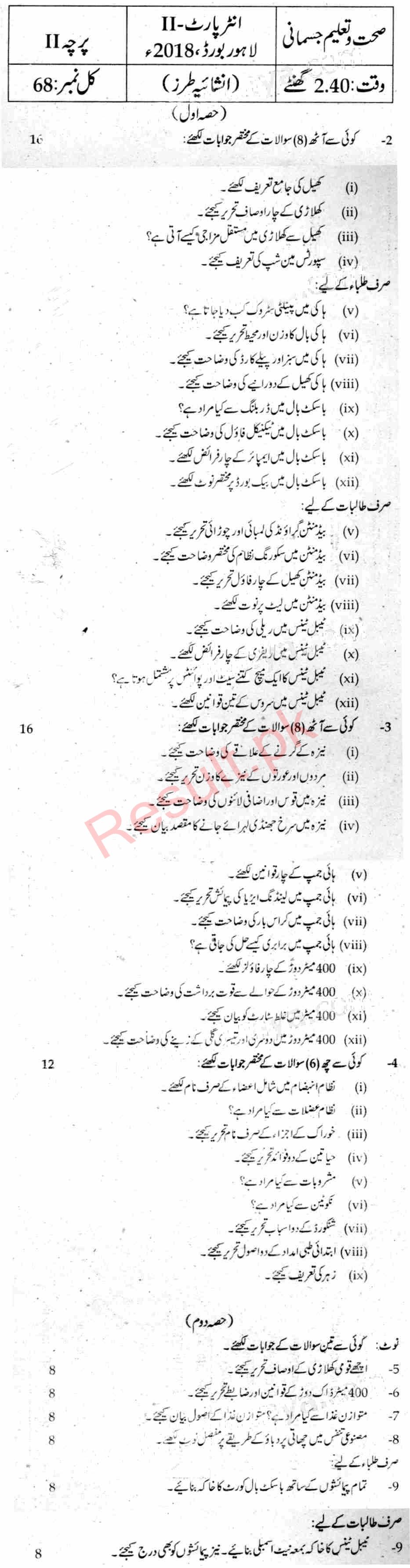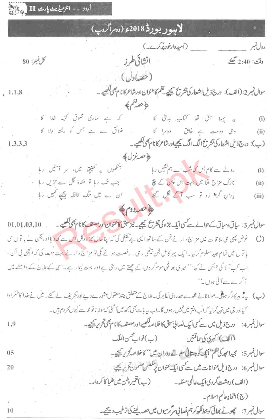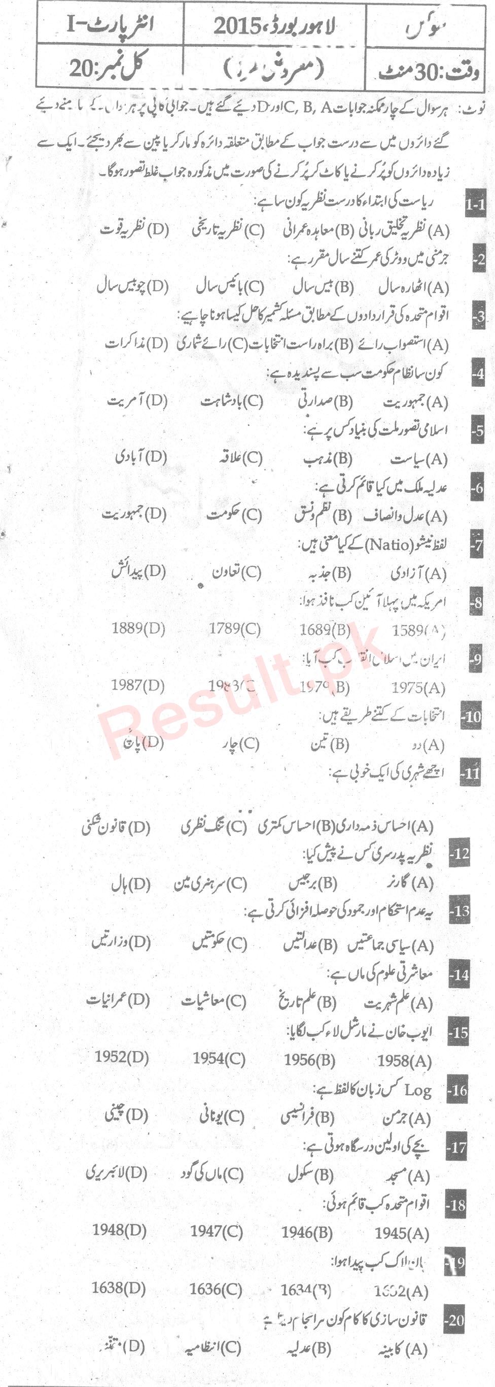 BISE Lahore Board Inter Part 1 2, 11th & 12th, Intermediate, FA, 1st & 2nd year Class, FSC, HSSC Past Papers 2026
