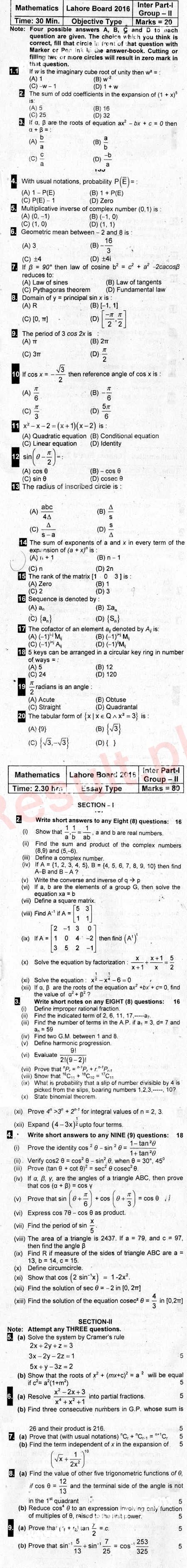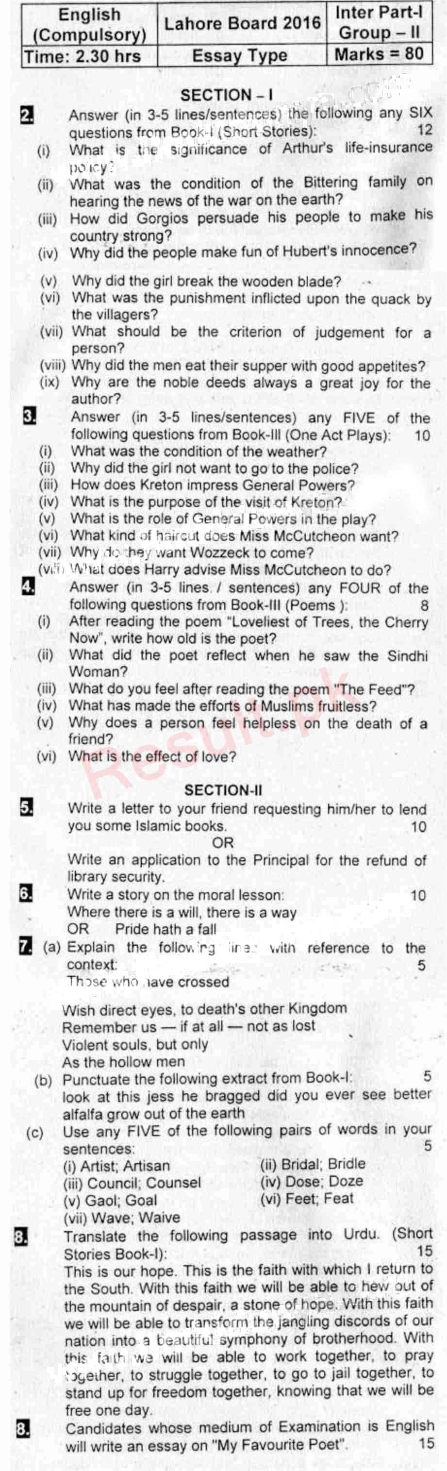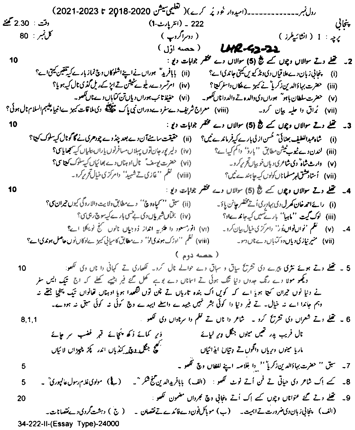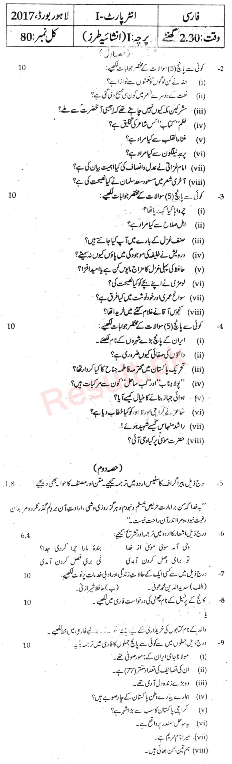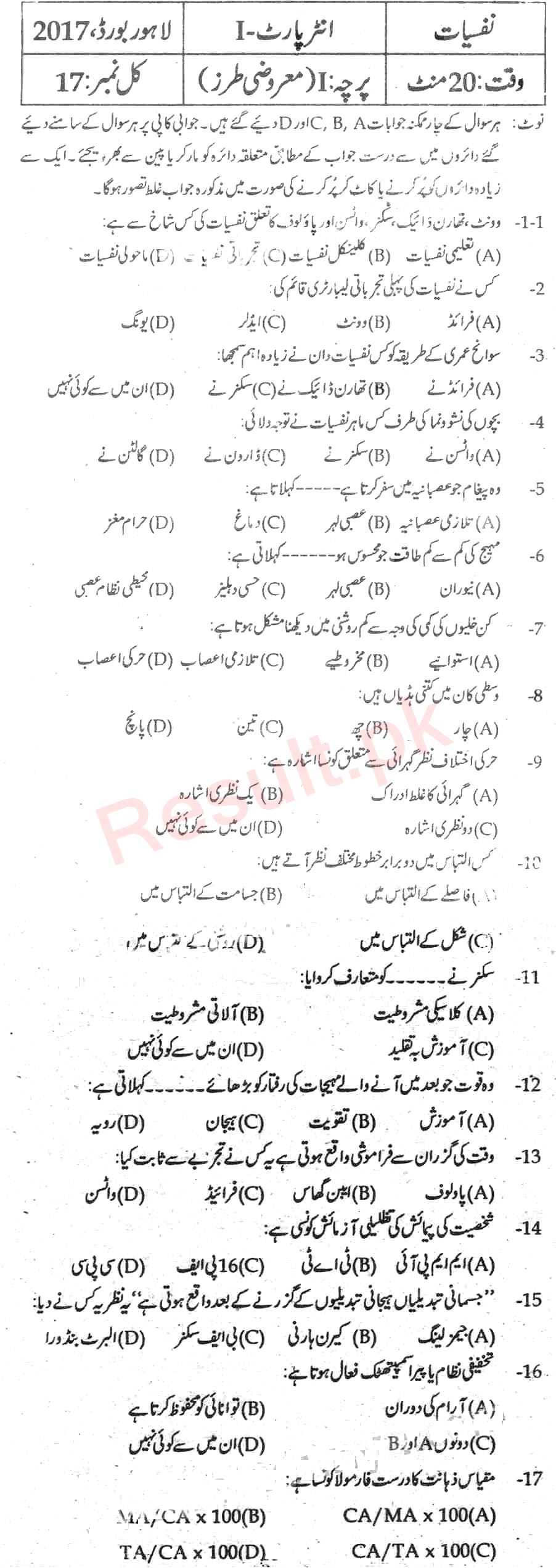 BISE Lahore Board Inter Part 1 2, 11th & 12th, Intermediate, FA, 1st & 2nd year Class, FSC, HSSC Past Papers 2026
