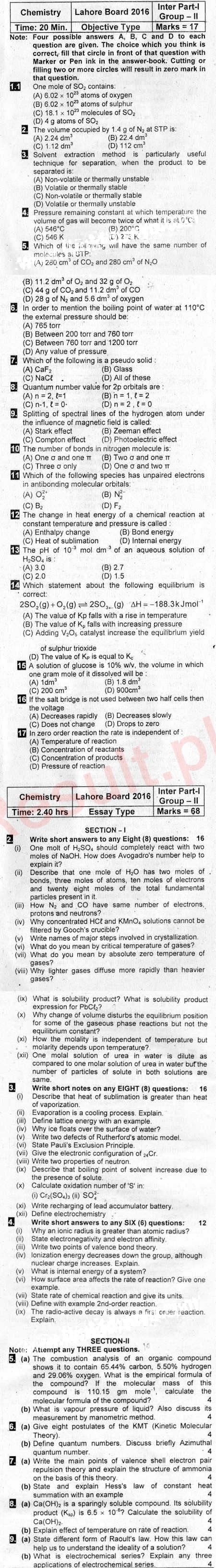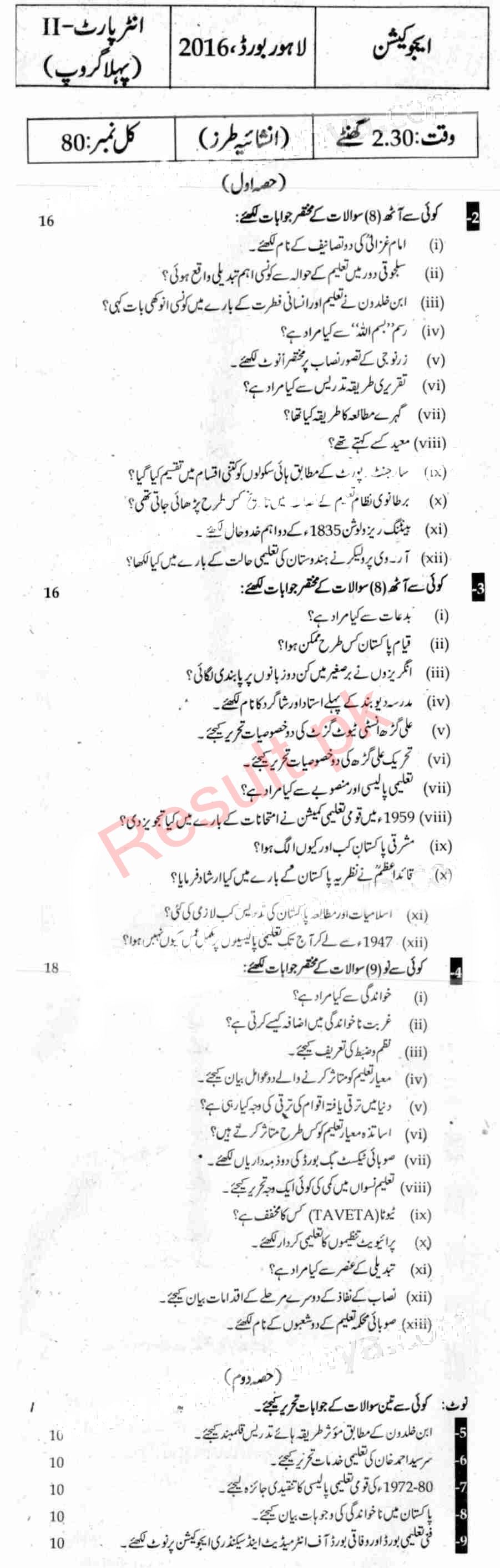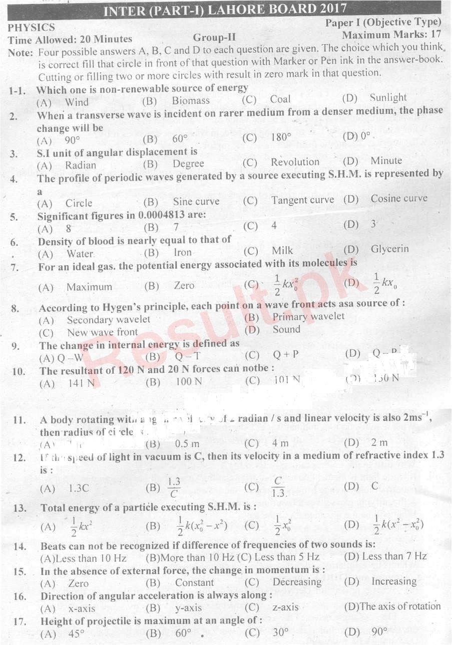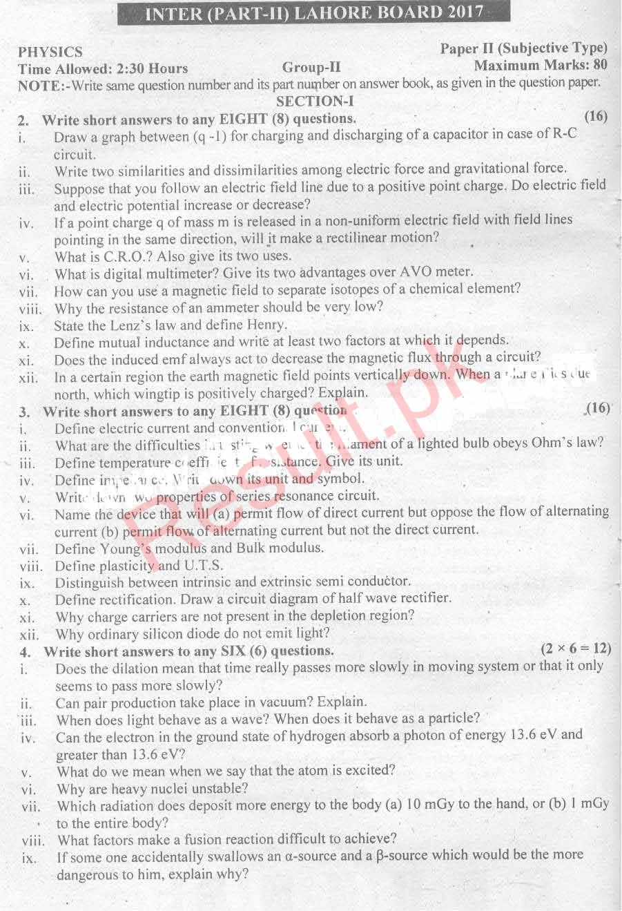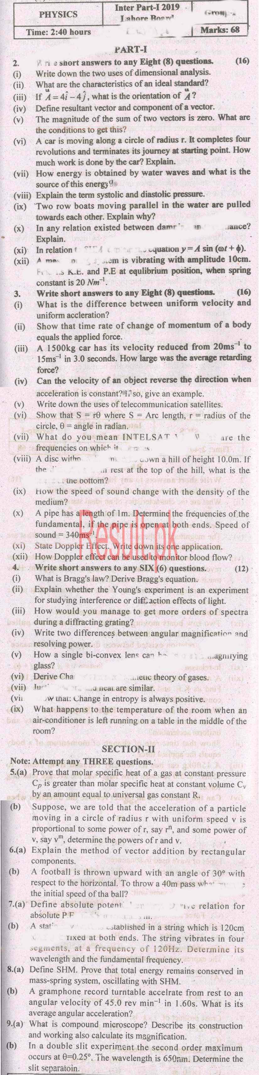 BISE Lahore Board Inter Part 1 2, 11th & 12th, Intermediate, FA, 1st & 2nd year Class, FSC, HSSC Past Papers 2026