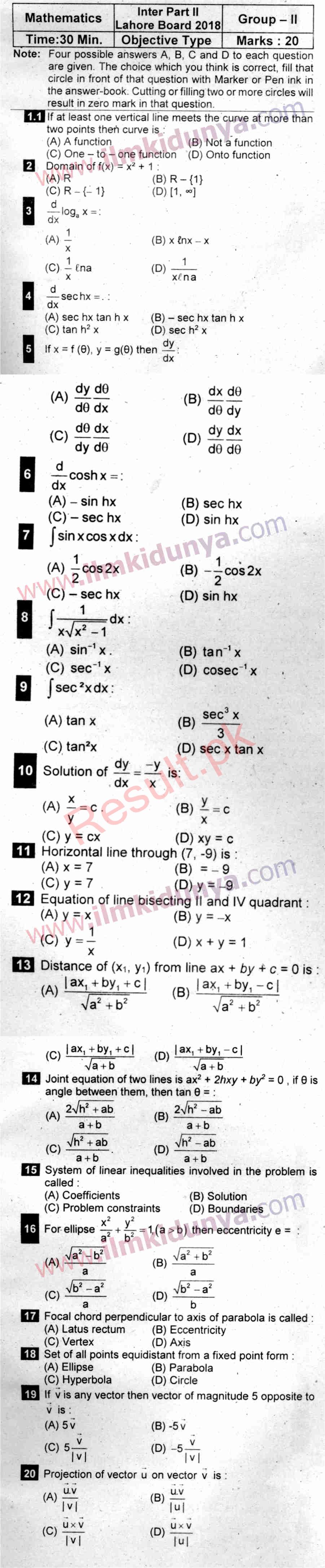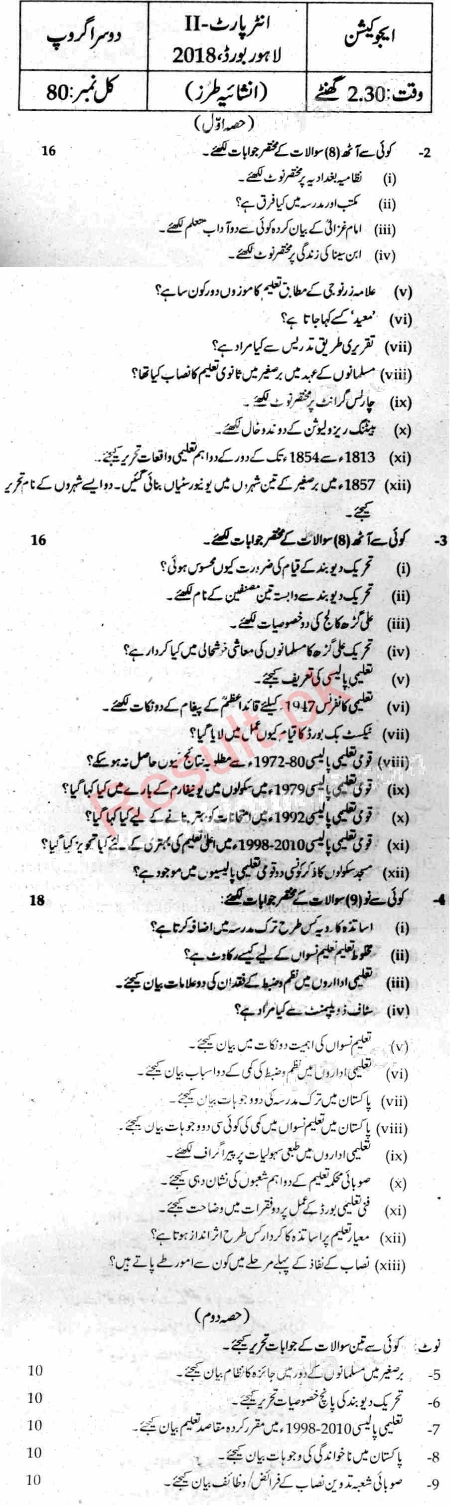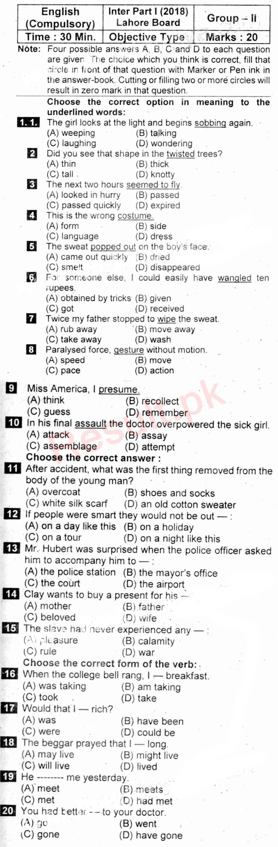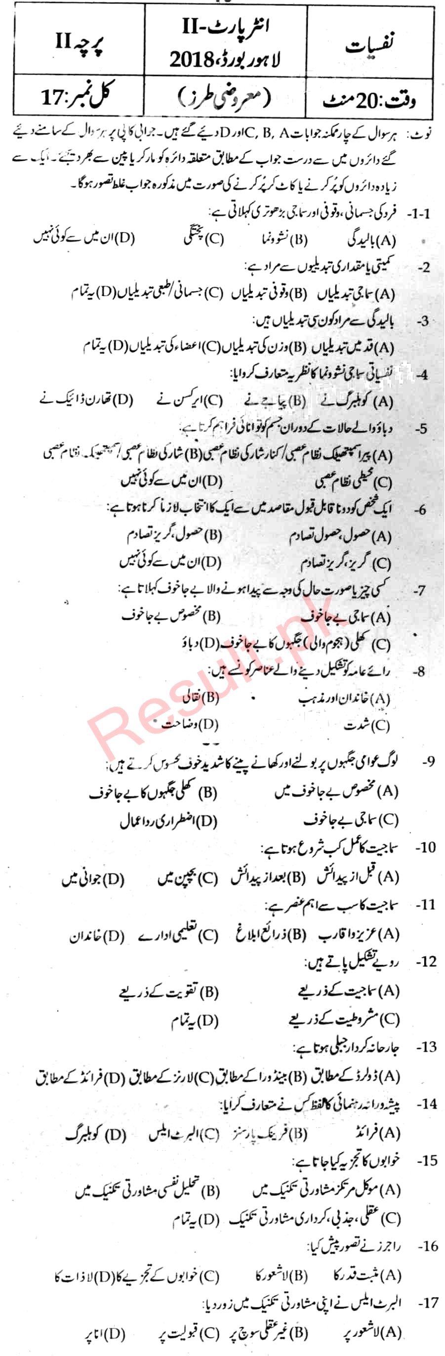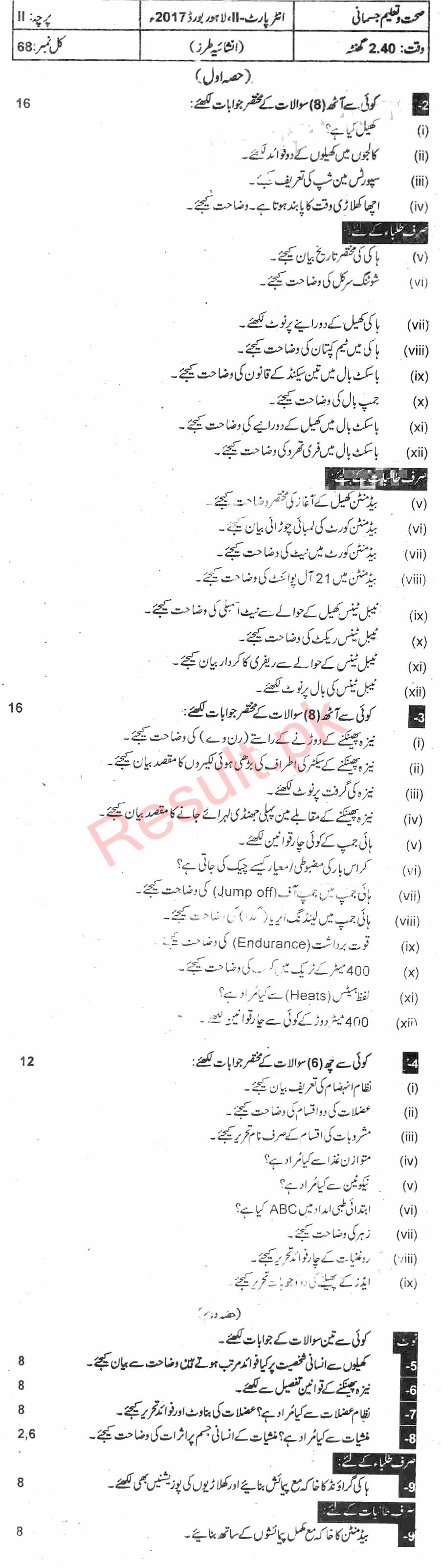 BISE Lahore Board Inter Part 1 2, 11th & 12th, Intermediate, FA, 1st & 2nd year Class, FSC, HSSC Past Papers 2026