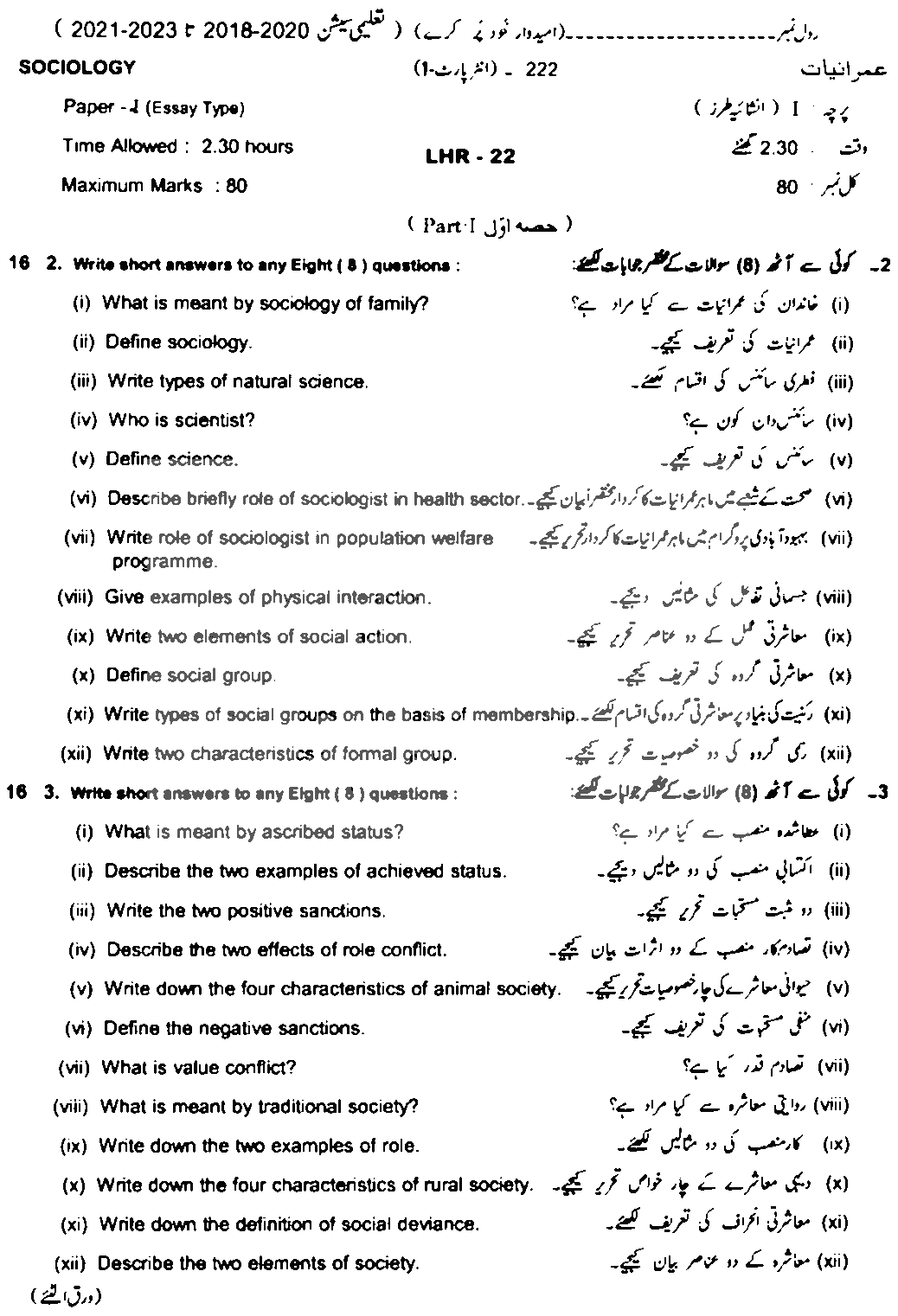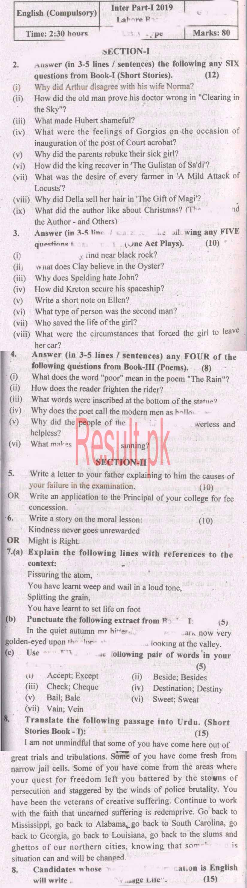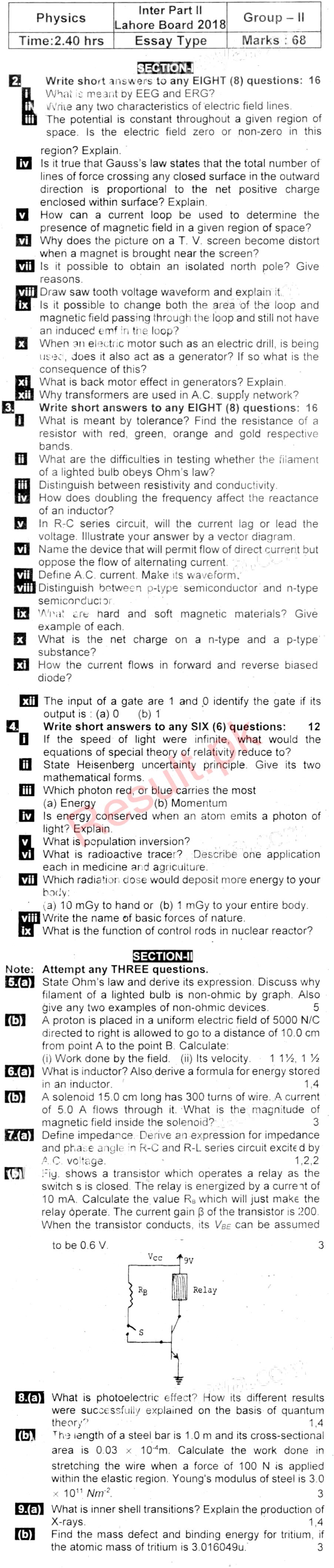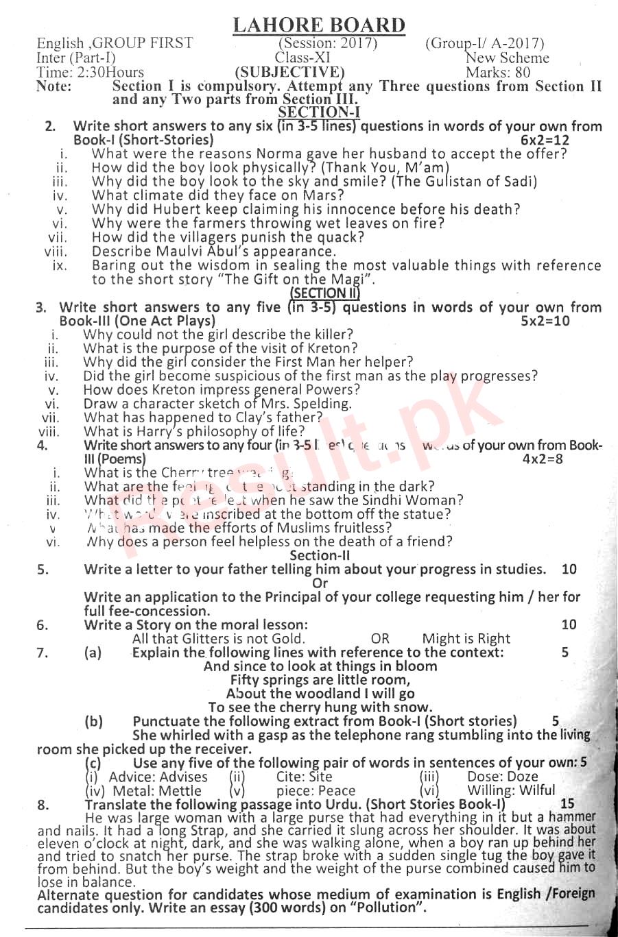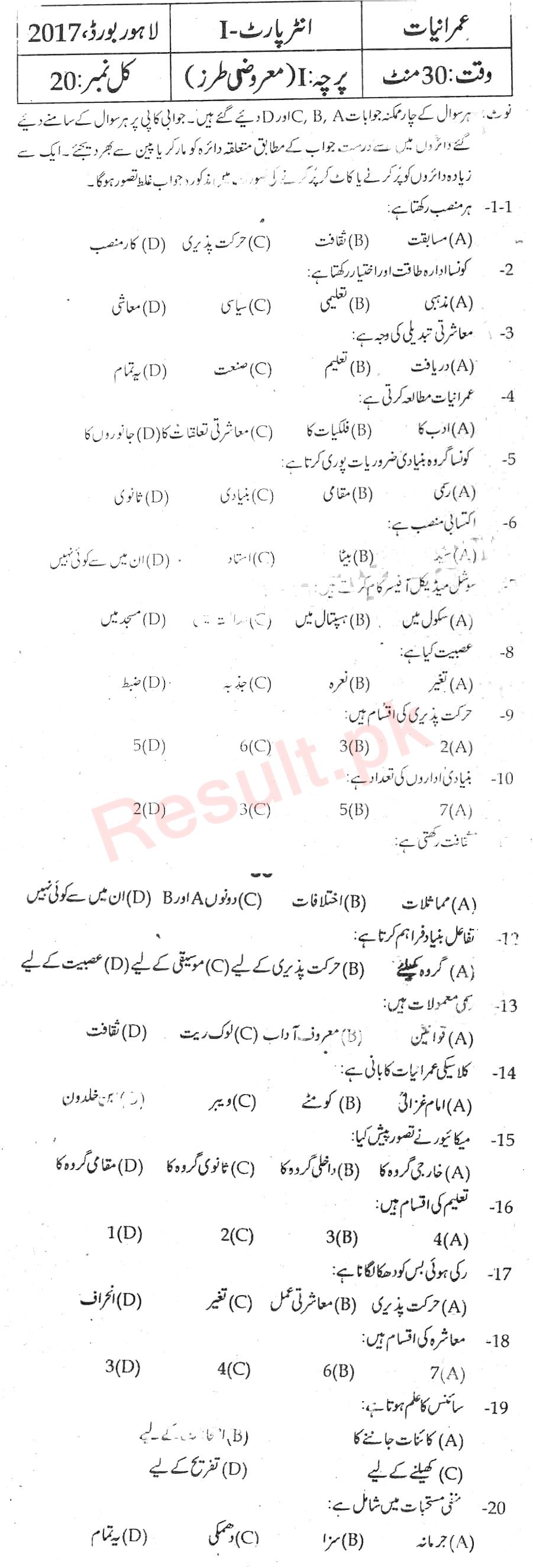 BISE Lahore Board Inter Part 1 2, 11th & 12th, Intermediate, FA, 1st & 2nd year Class, FSC, HSSC Past Papers 2026