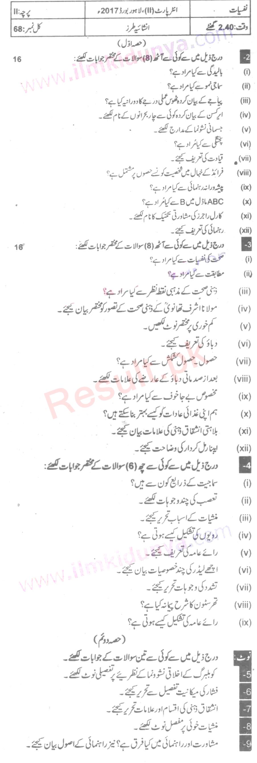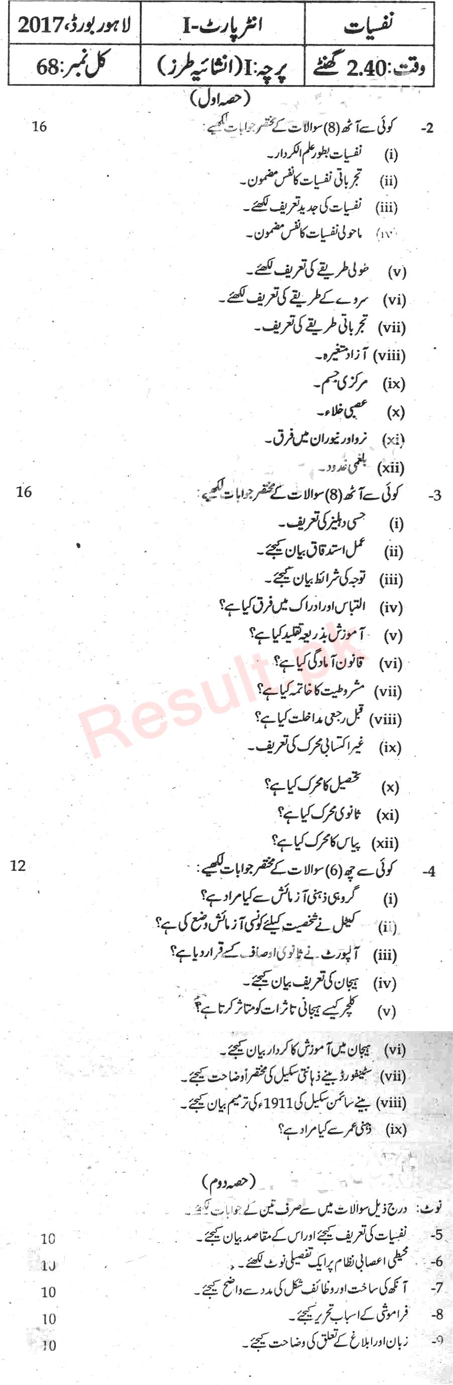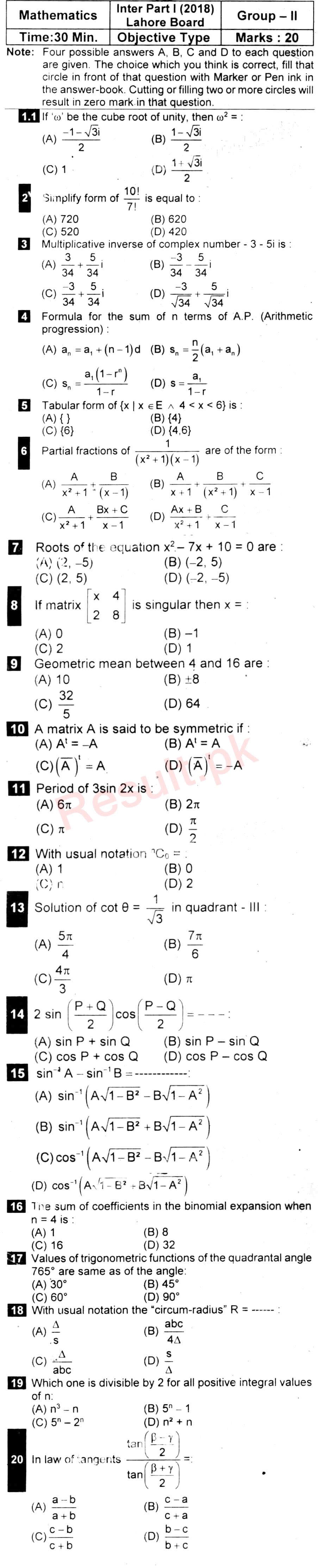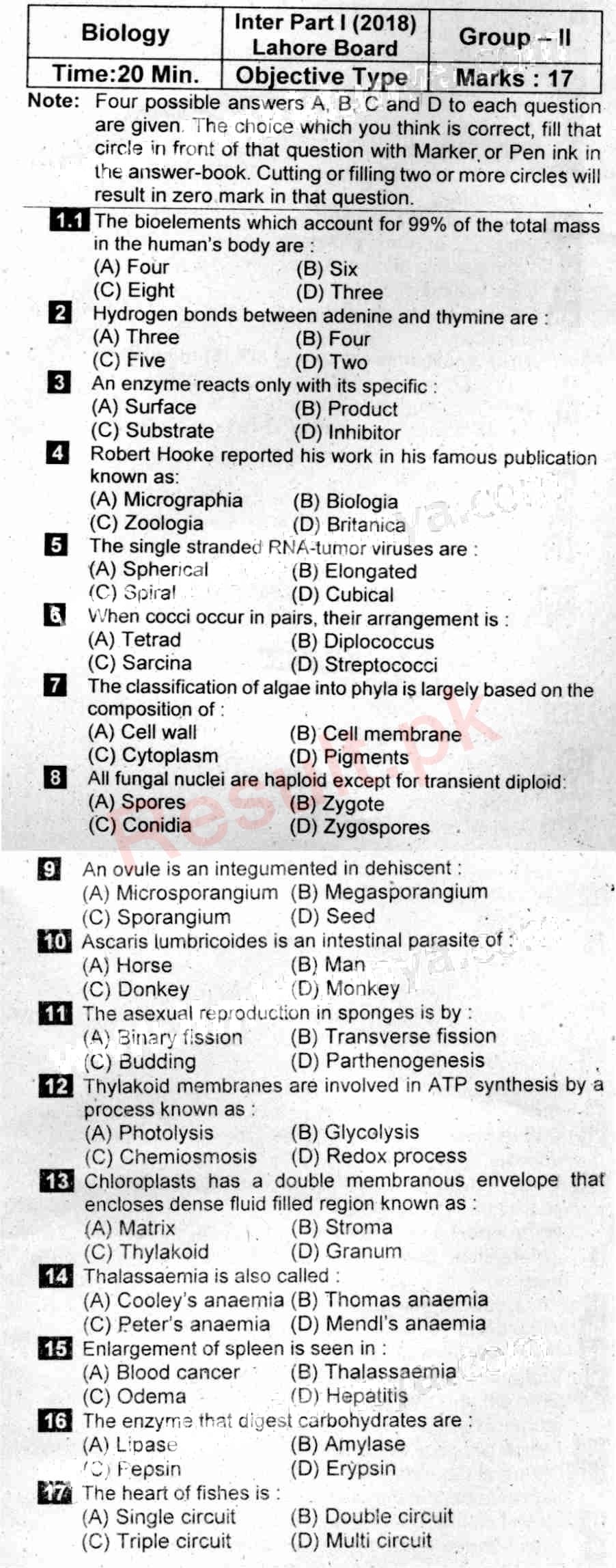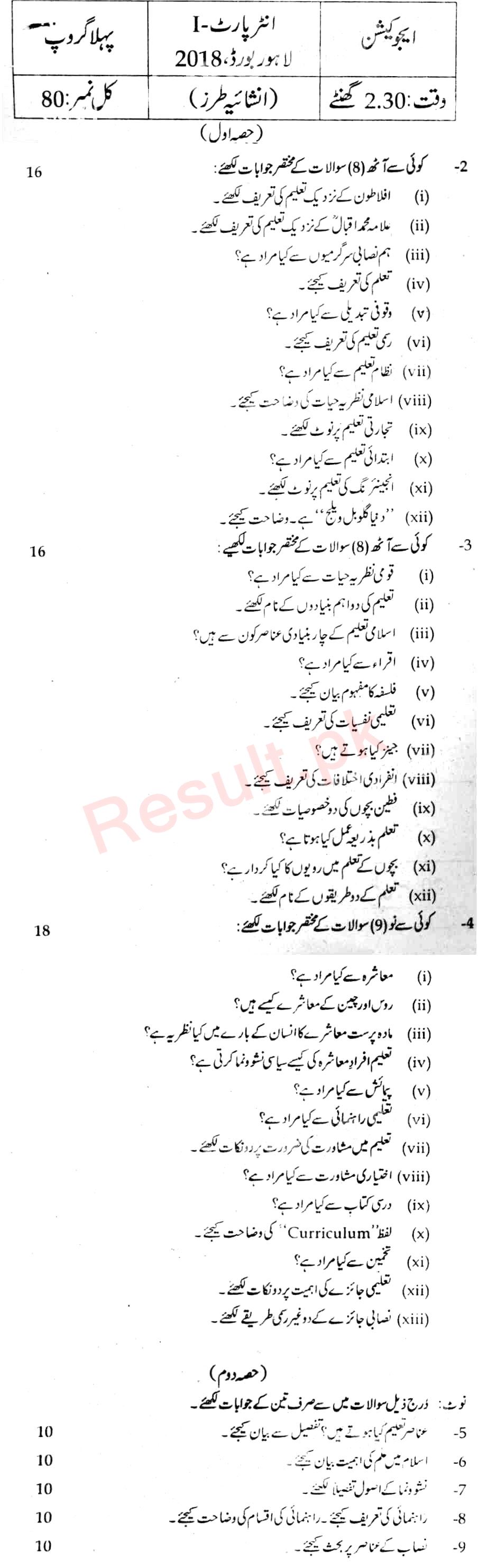 BISE Lahore Board Inter Part 1 2, 11th & 12th, Intermediate, FA, 1st & 2nd year Class, FSC, HSSC Past Papers 2026
