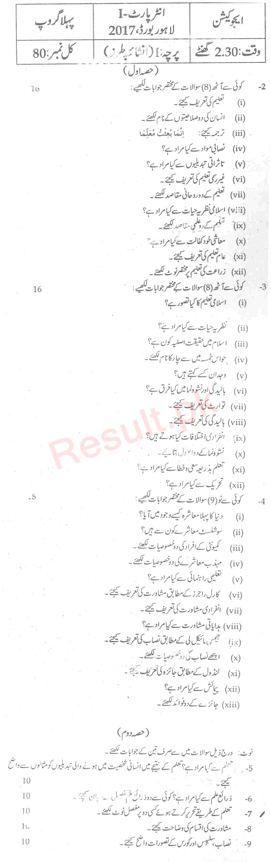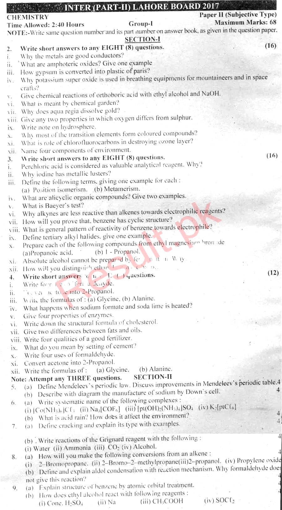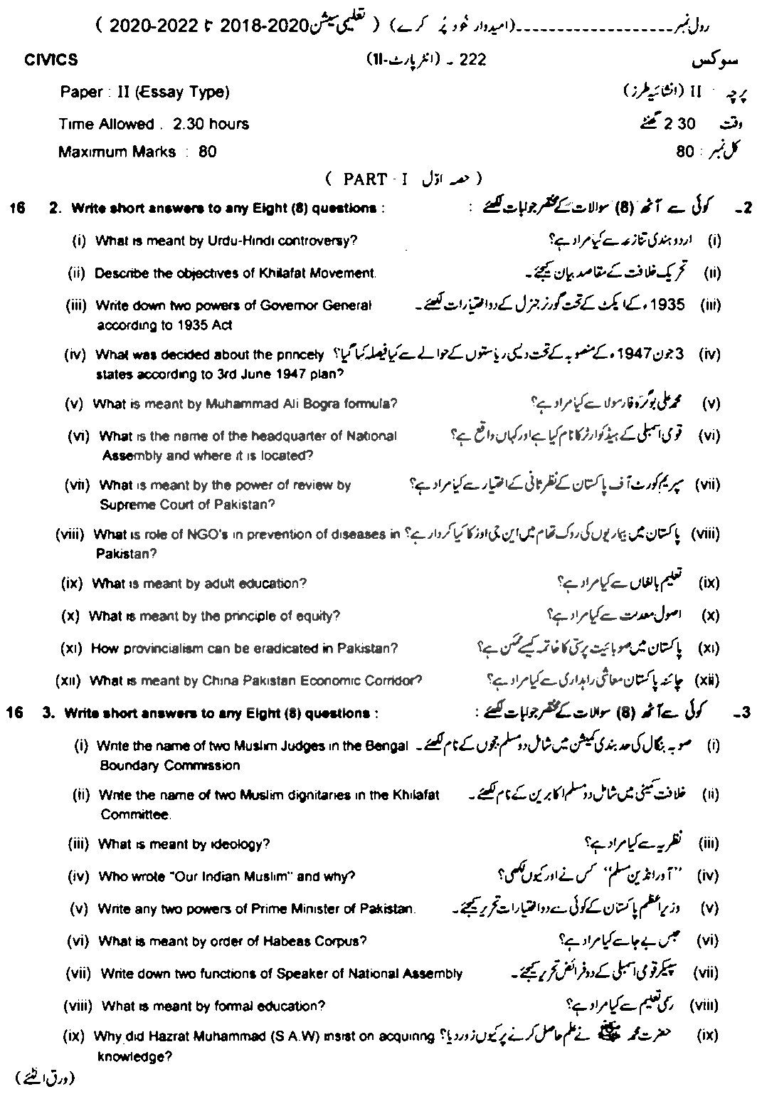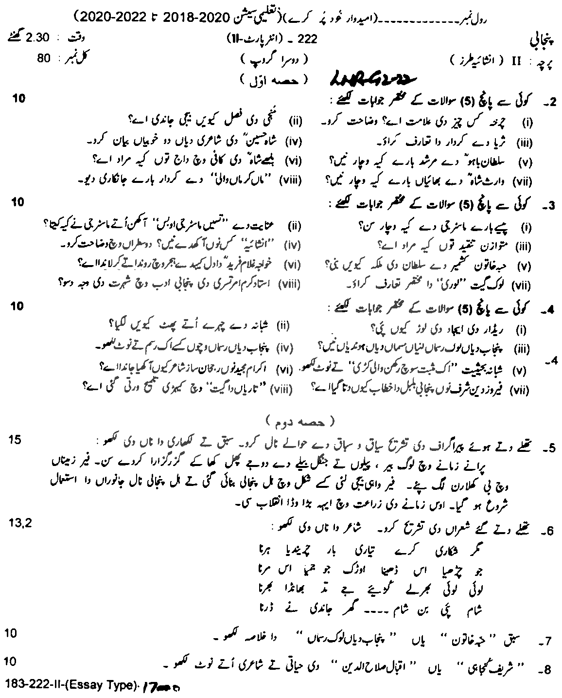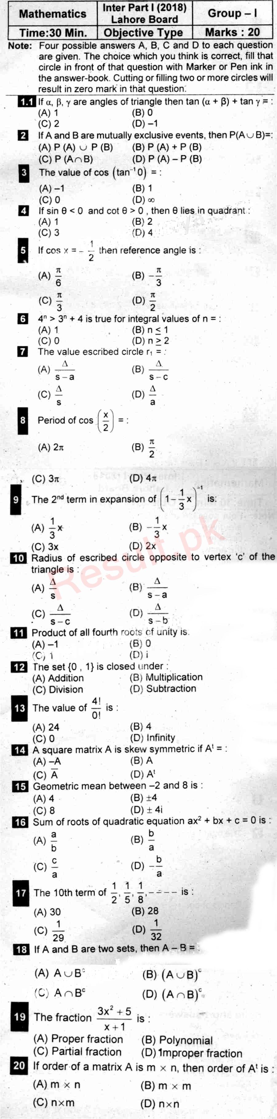BISE Lahore Board Inter Part 1 2, 11th & 12th, Intermediate, FA, 1st & 2nd year Class, FSC, HSSC Past Papers 2026