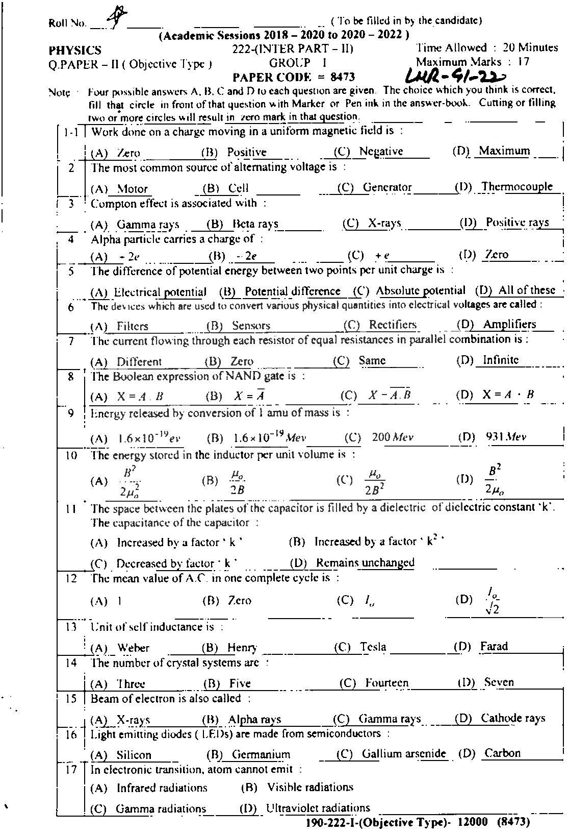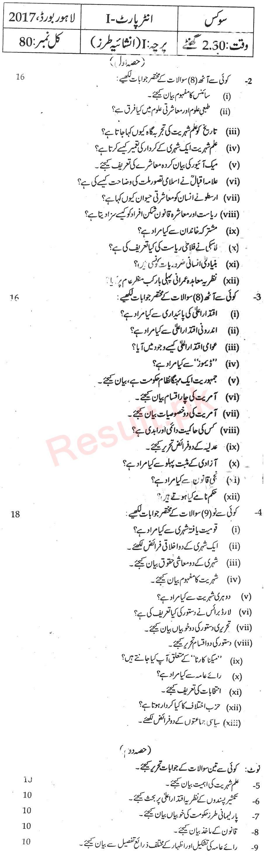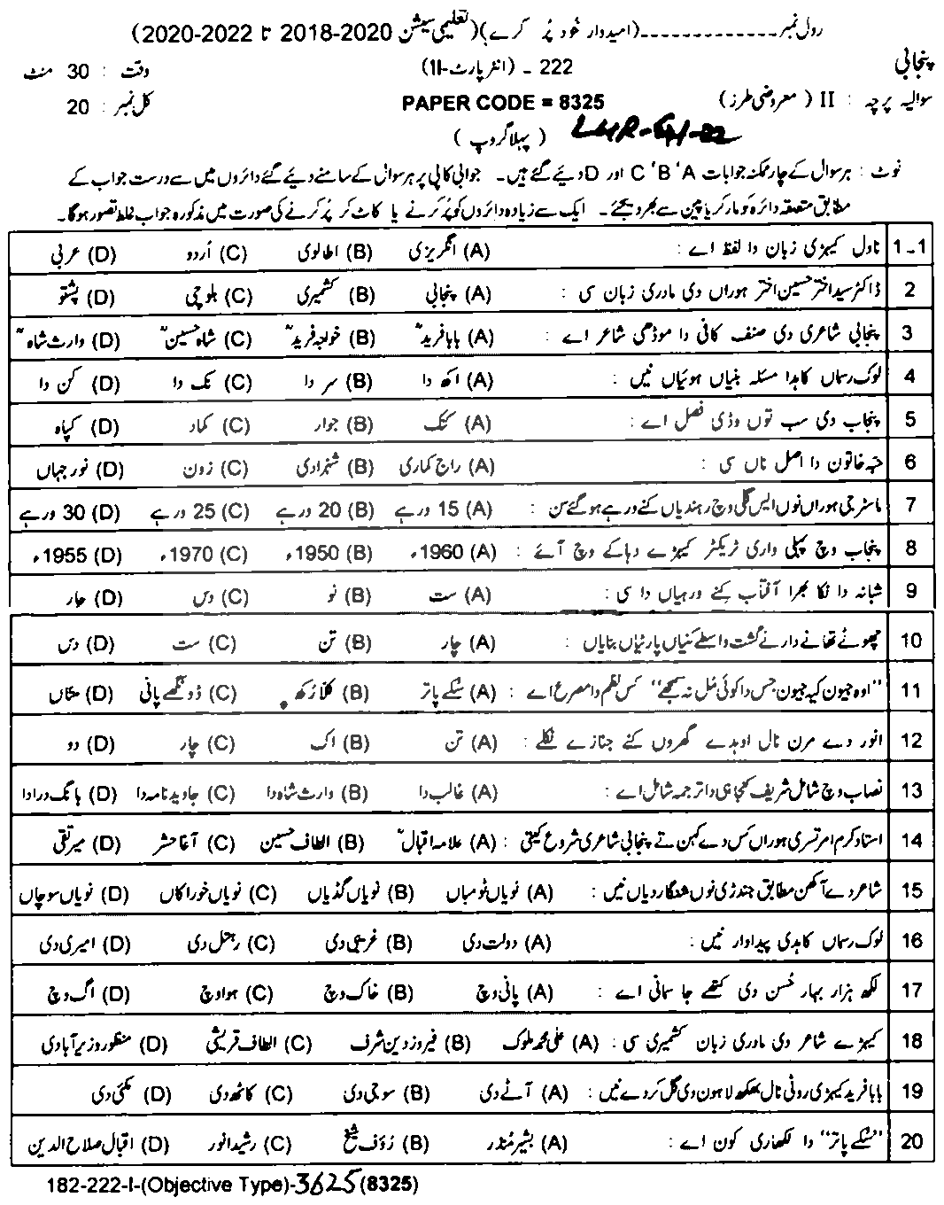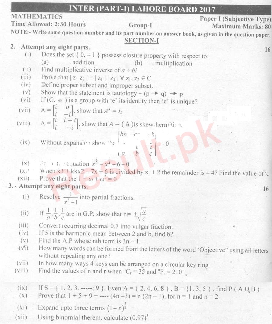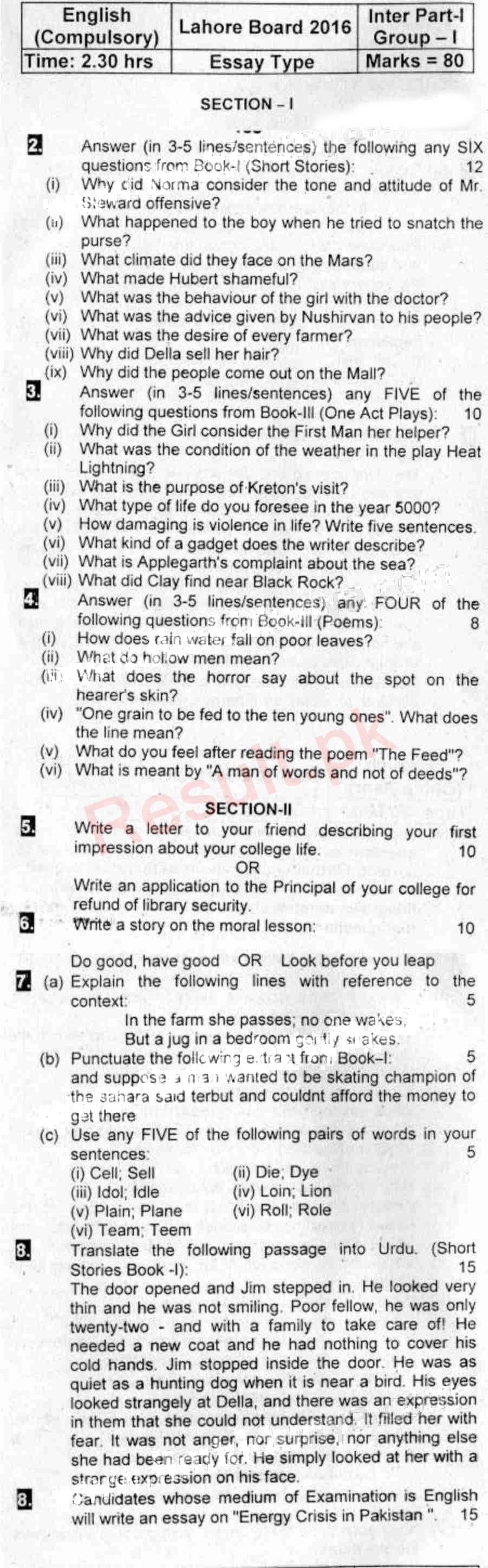 BISE Lahore Board Inter Part 1 2, 11th & 12th, Intermediate, FA, 1st & 2nd year Class, FSC, HSSC Past Papers 2026
