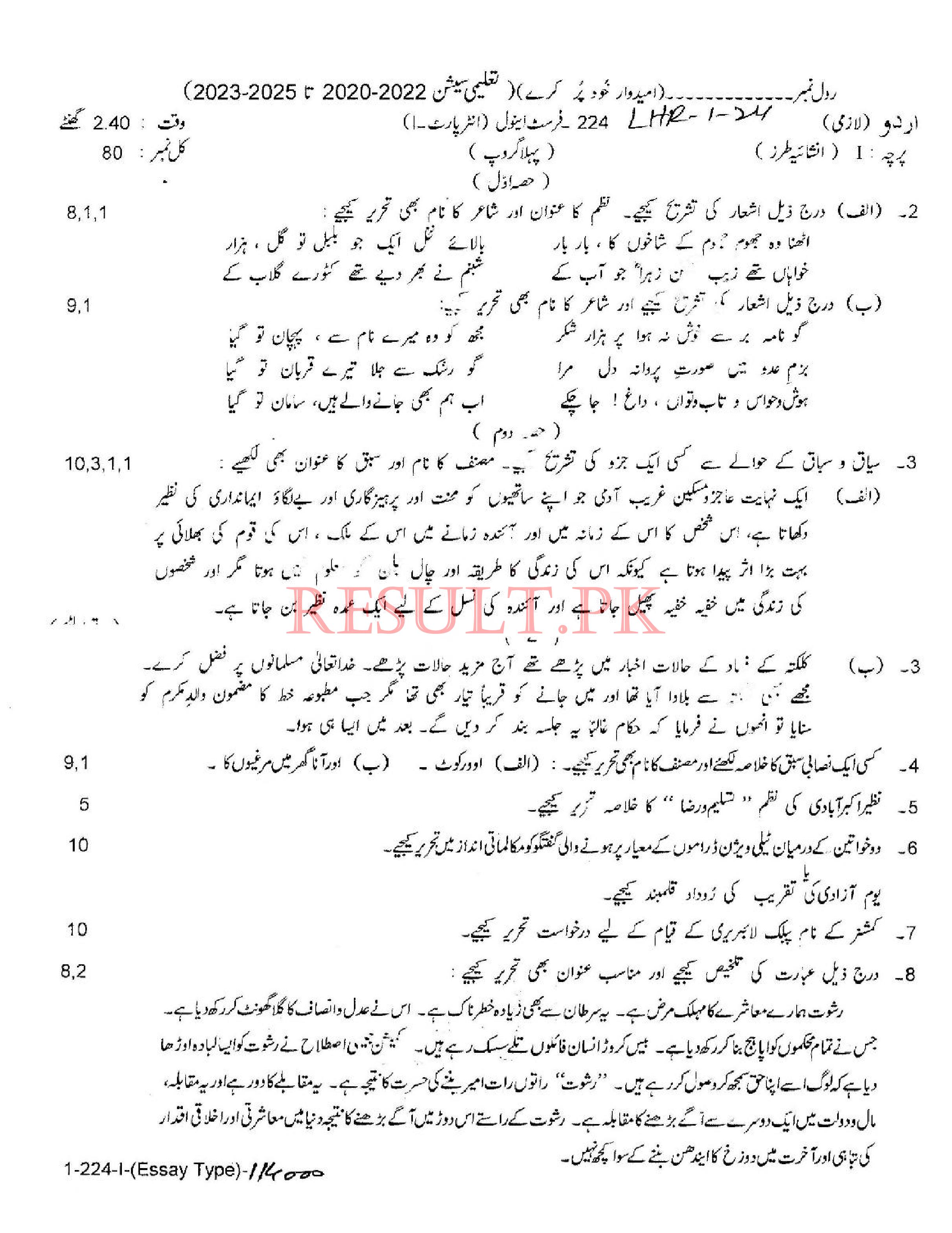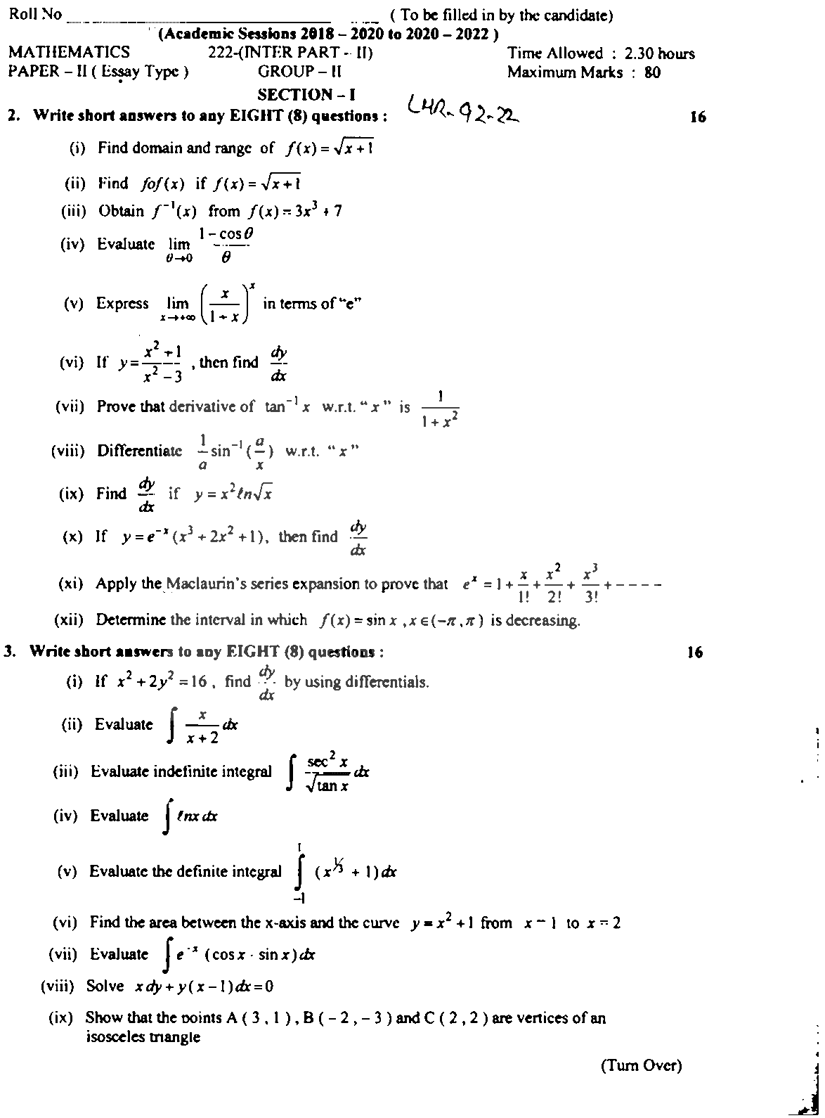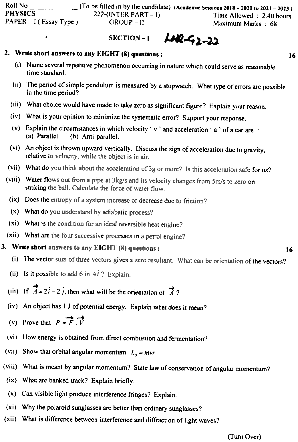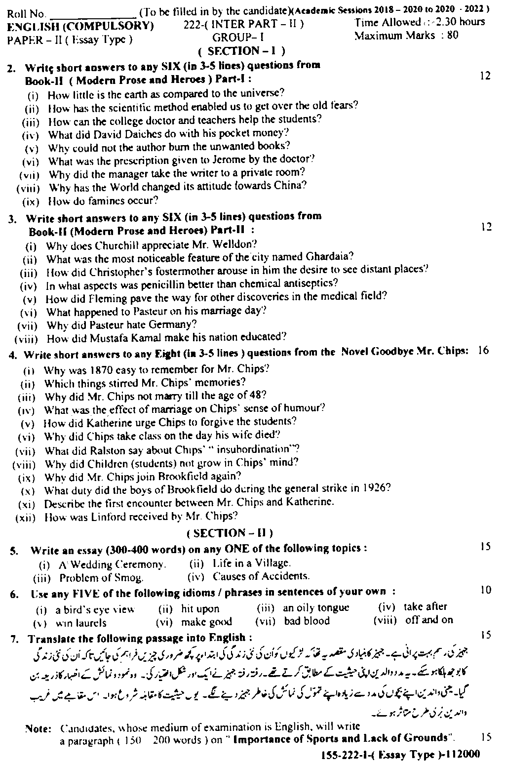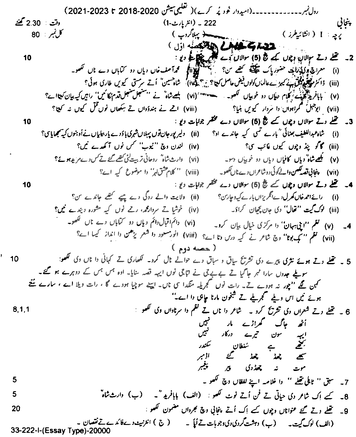 BISE Lahore Board Inter Part 1 2, 11th & 12th, Intermediate, FA, 1st & 2nd year Class, FSC, HSSC Past Papers 2026