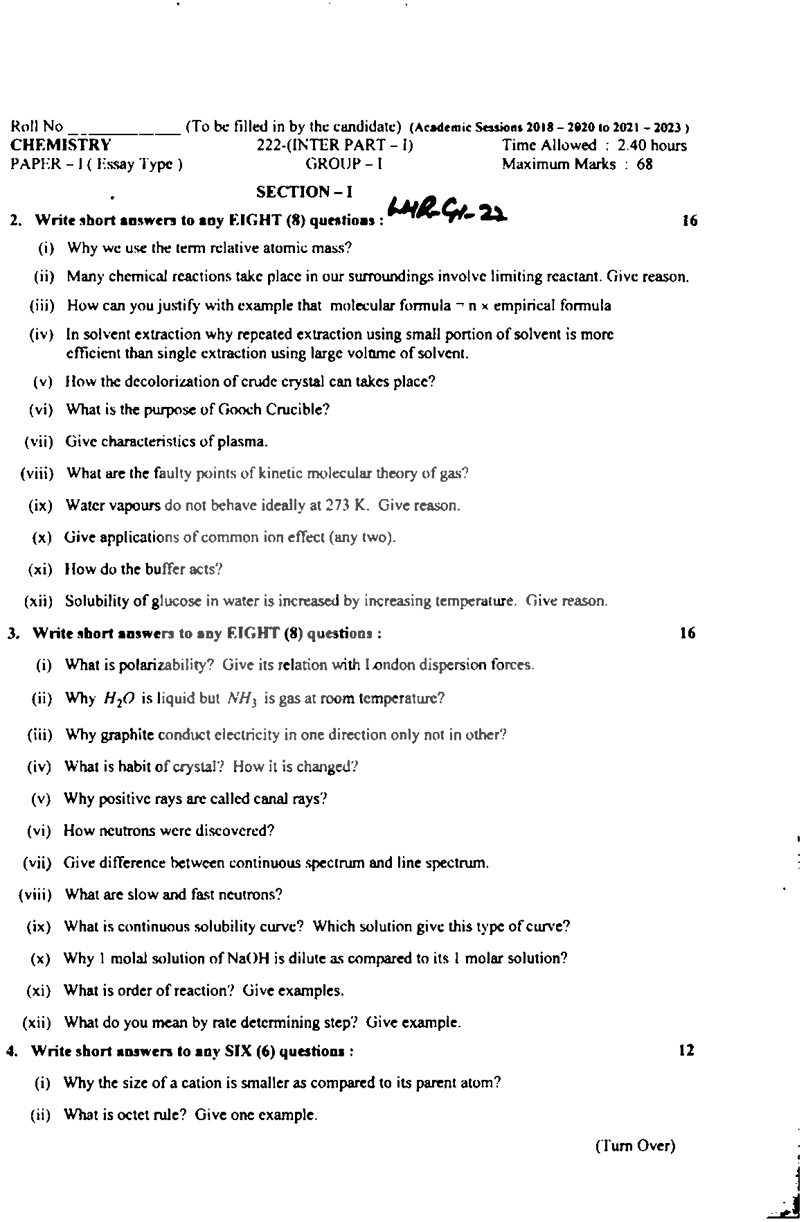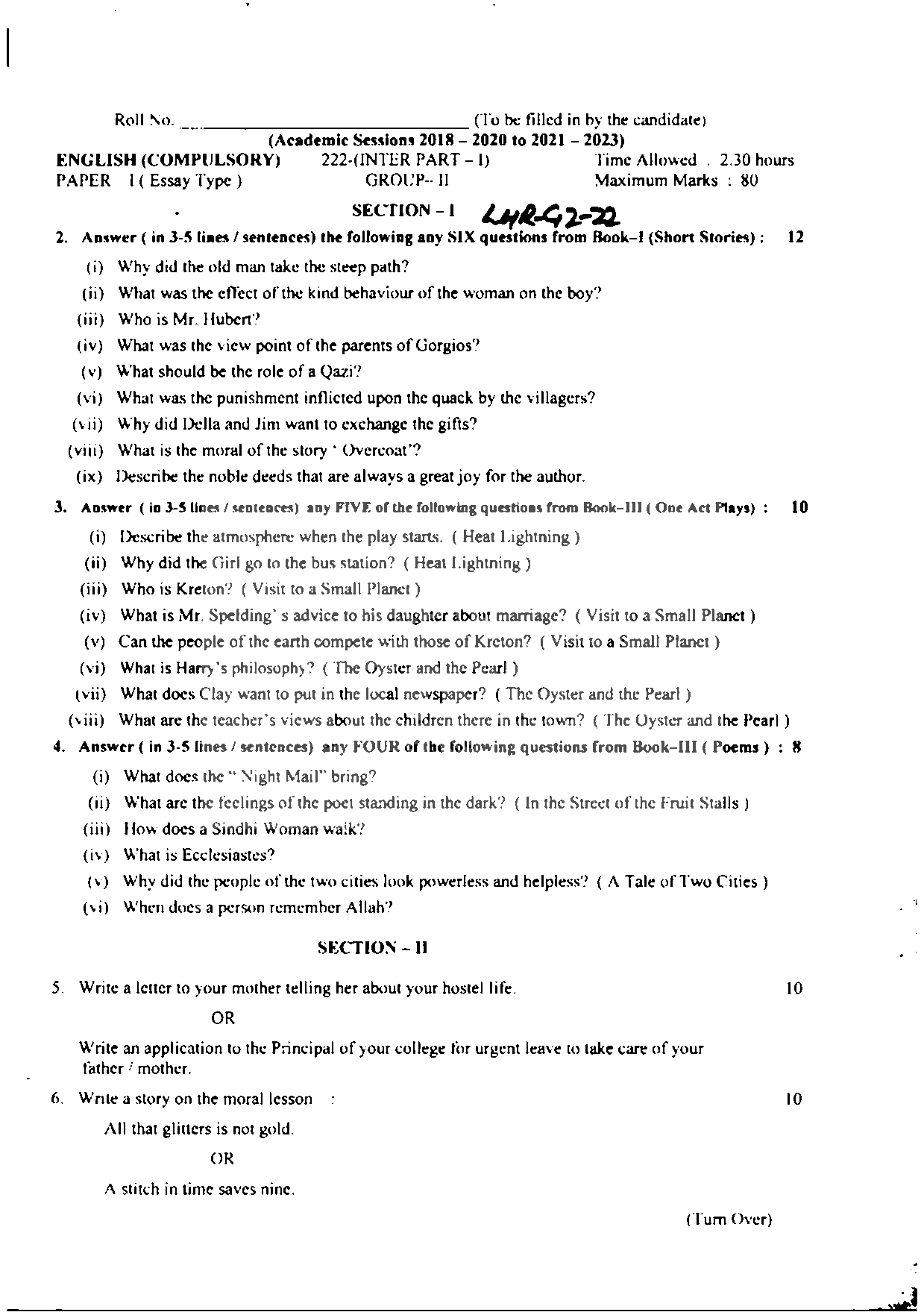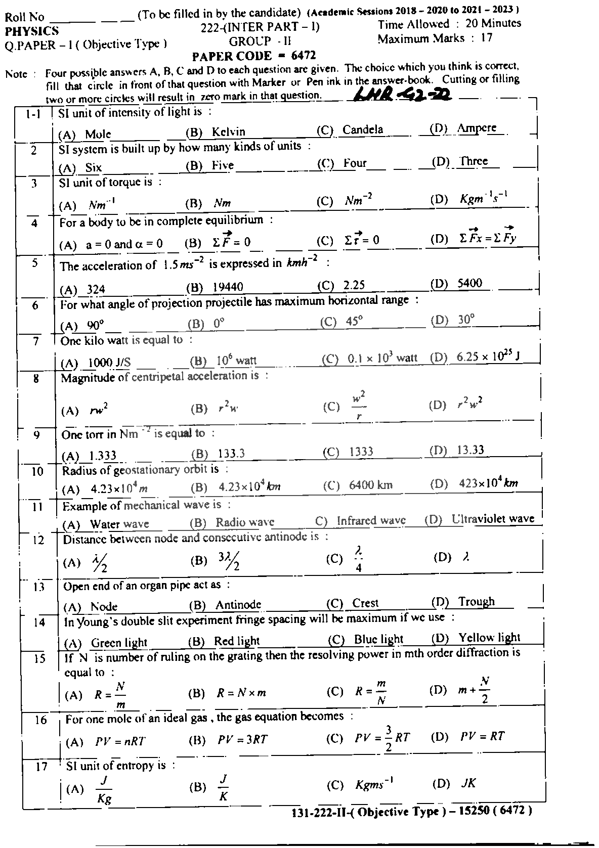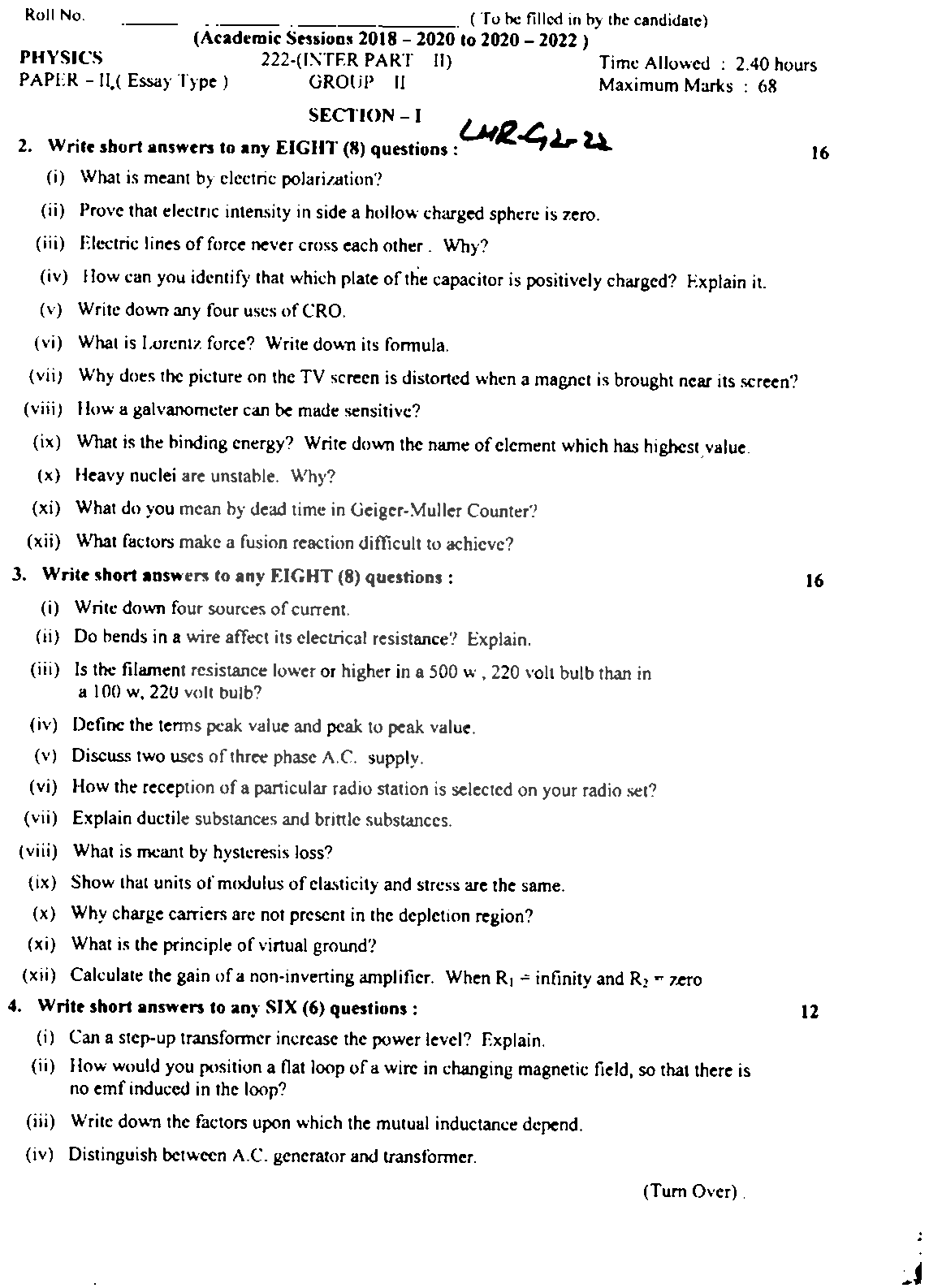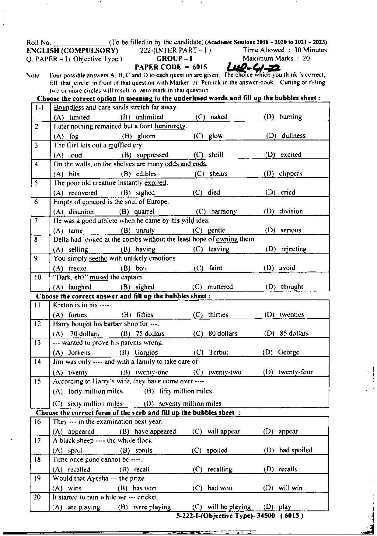 BISE Lahore Board Inter Part 1 2, 11th & 12th, Intermediate, FA, 1st & 2nd year Class, FSC, HSSC Past Papers 2026