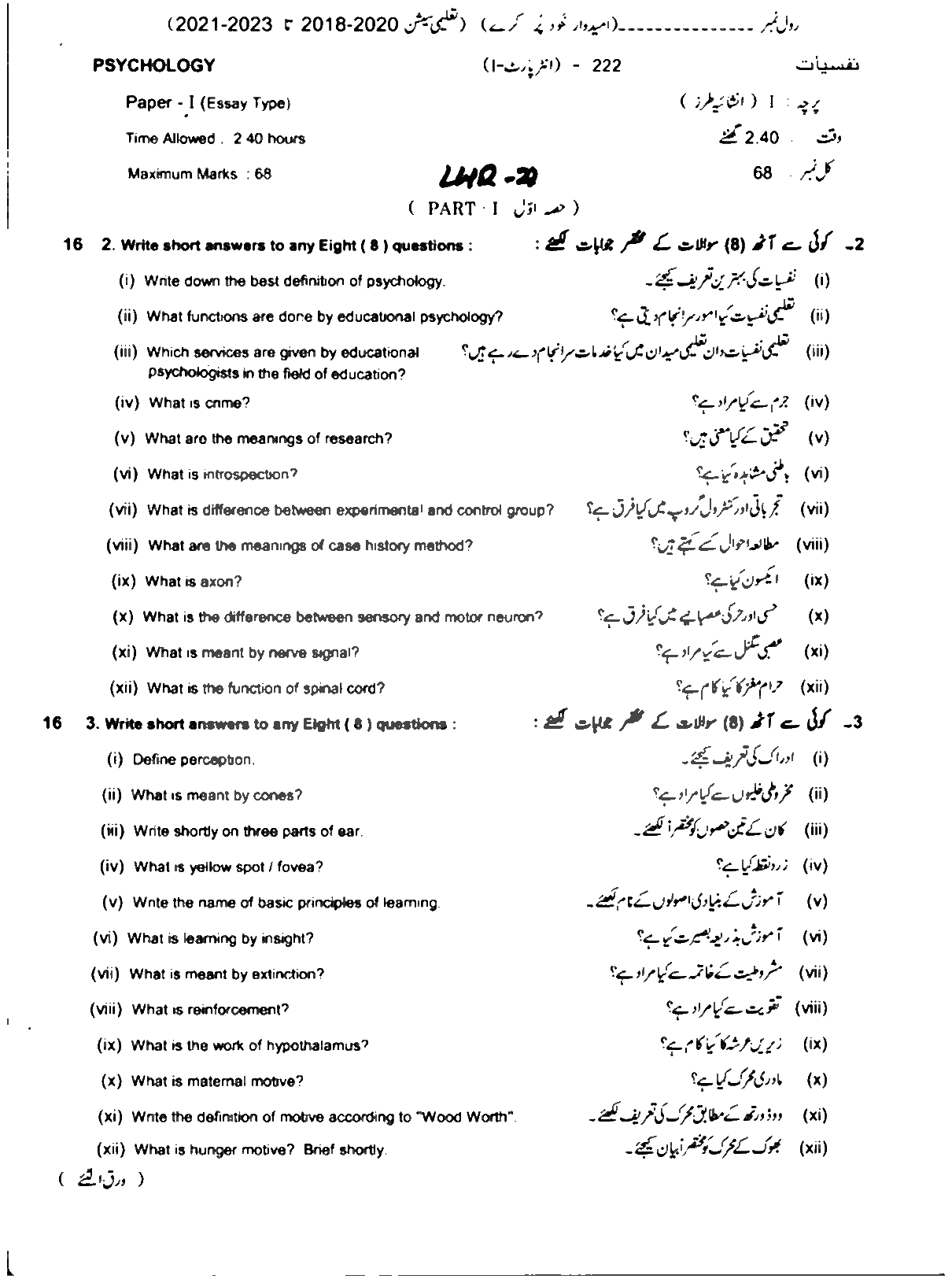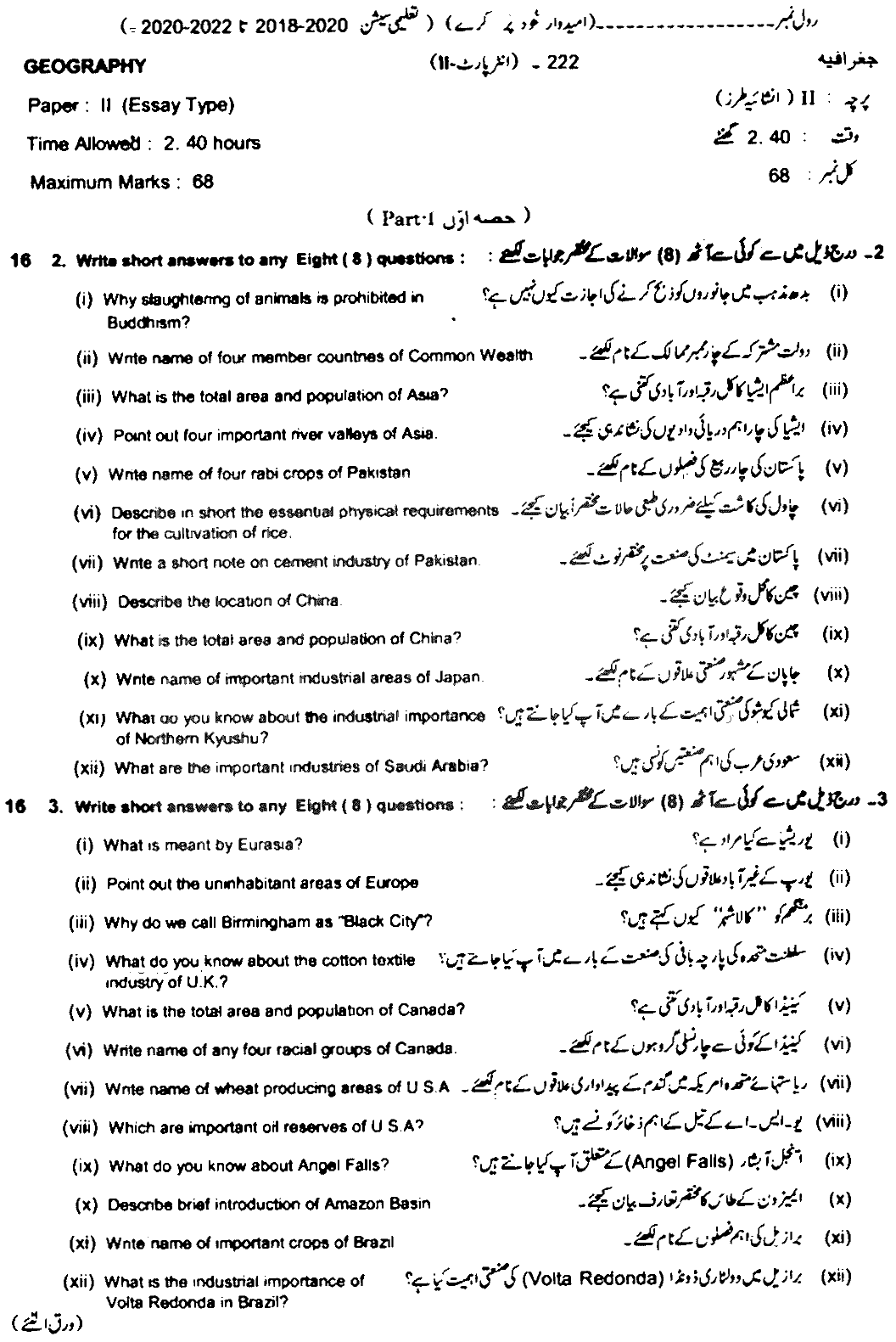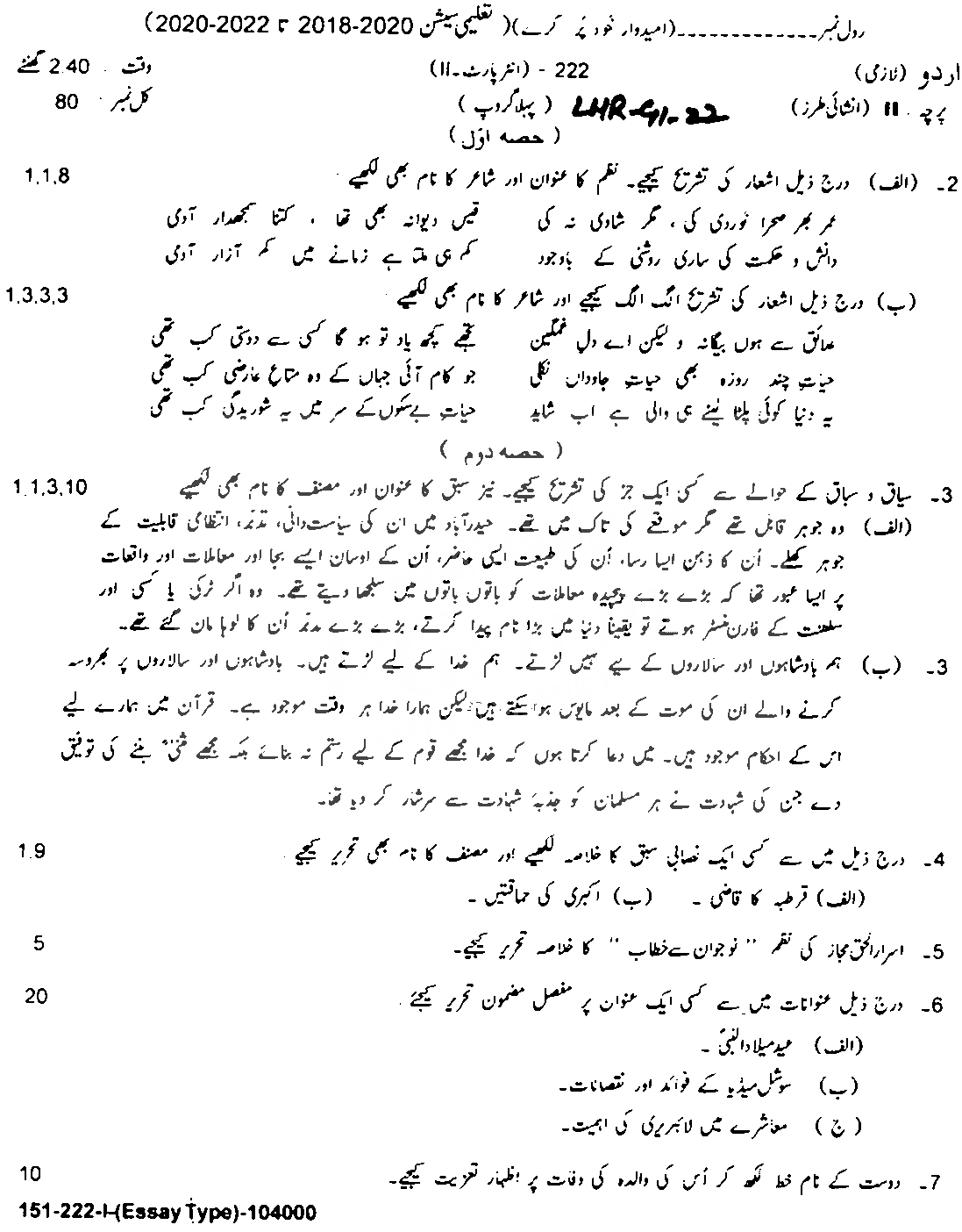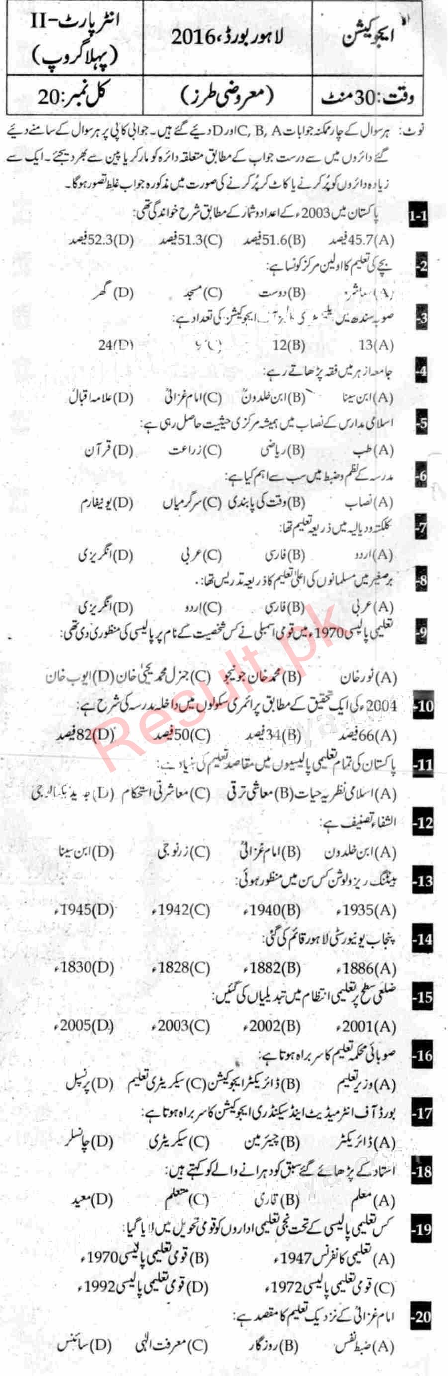 The 12th class students of BISE Lahore uses past papers for better preparation of their exams. It is because these BISE Lahore 12th class past papers provide complete information about the important questions and also the paper pattern which is used by the board. The students can know about important questions through these past papers and it becomes easy for them to get good marks by preparing right types of questions after taking guidance from the past papers. BISE Lahore 12th class past papers can be downloaded from this site by the interested students without any problem.